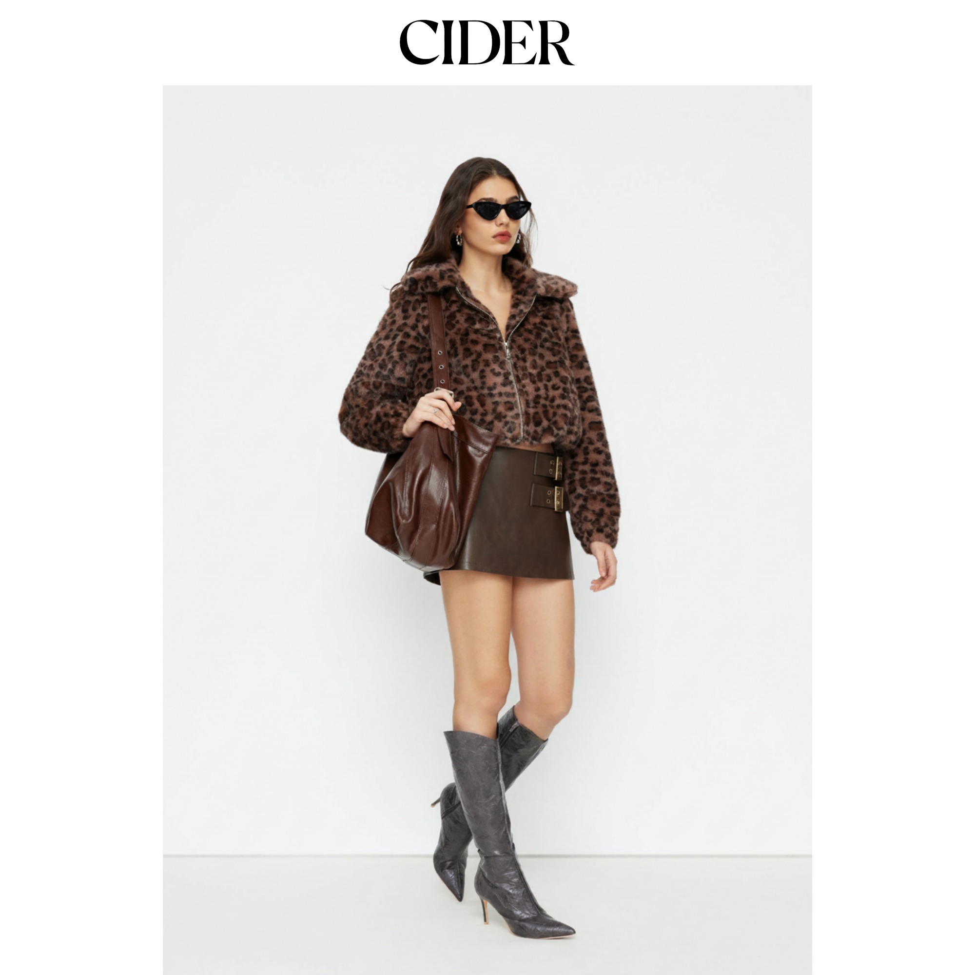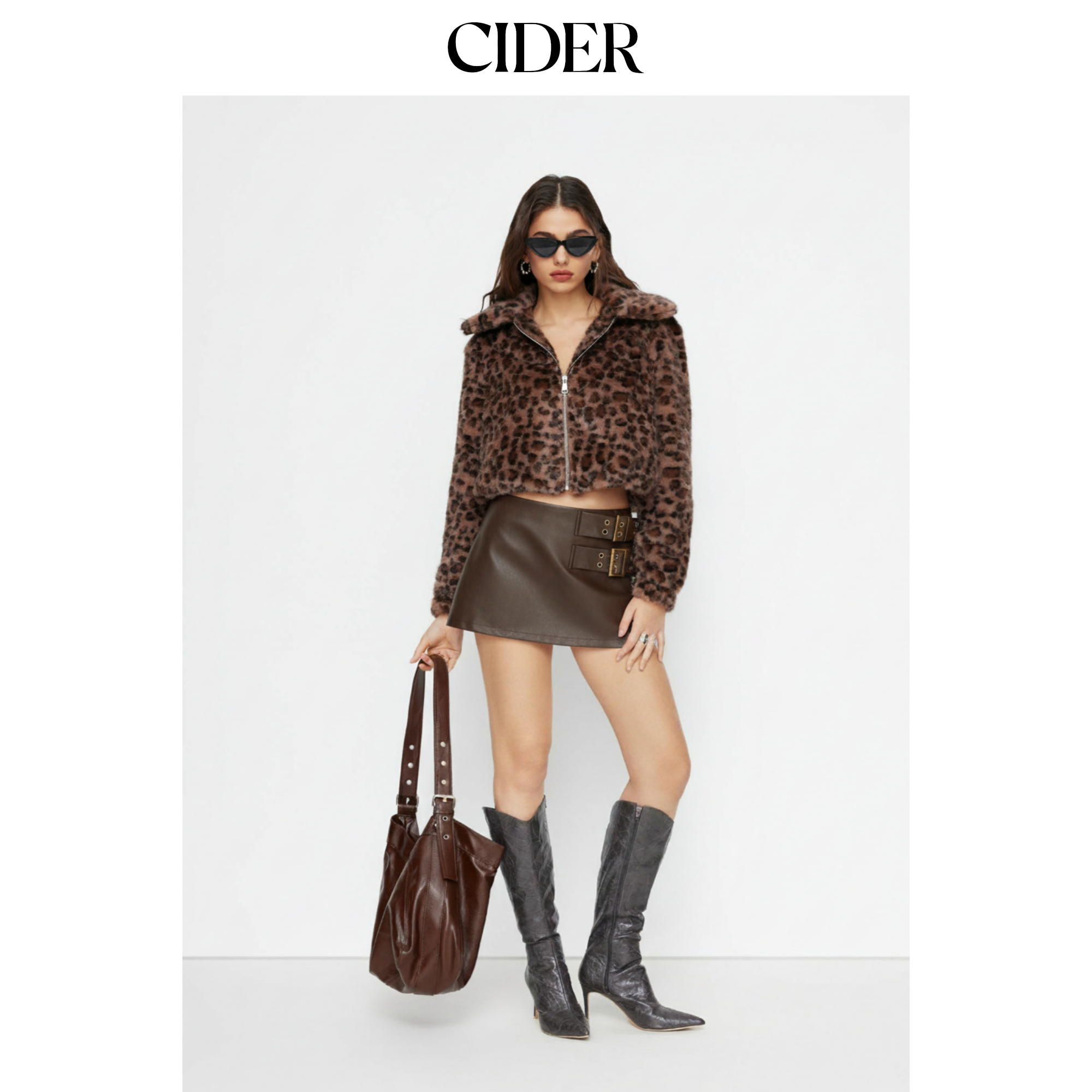 CIDER都市游牧风仿皮中腰系带A字迷你短裙裤114954901
