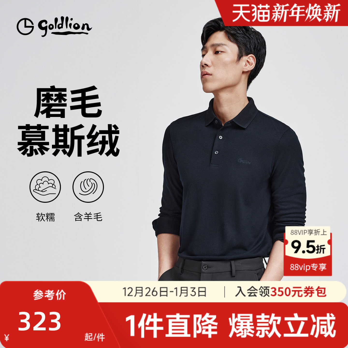 【慕斯绒】金利来秋冬新款男磨毛翻领POLO衫纯色商务长袖T恤男款