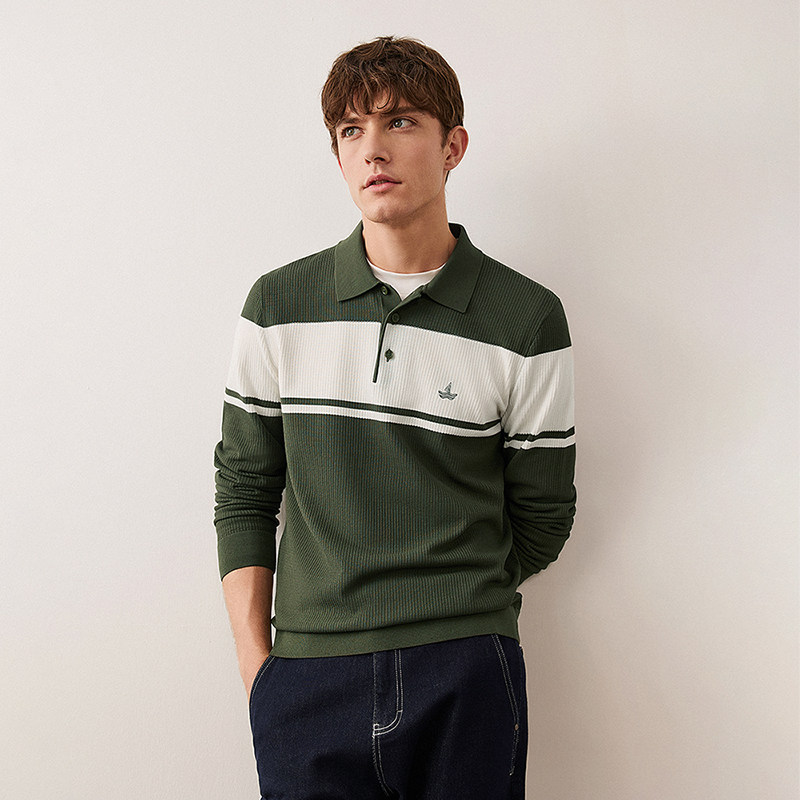 【透气珠地】暇步士男装2025秋季新款弹力休闲行政商务长袖POLO衫