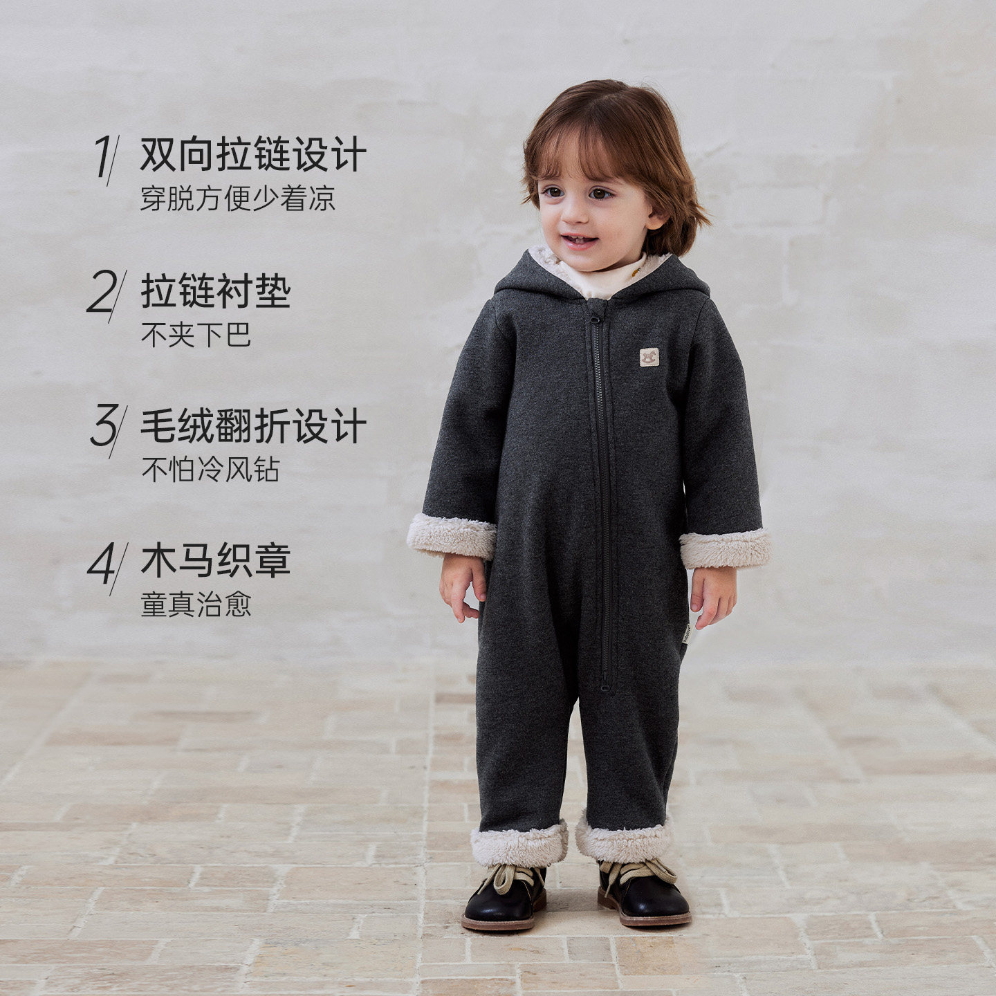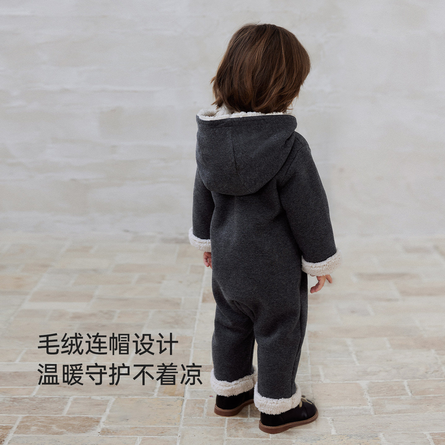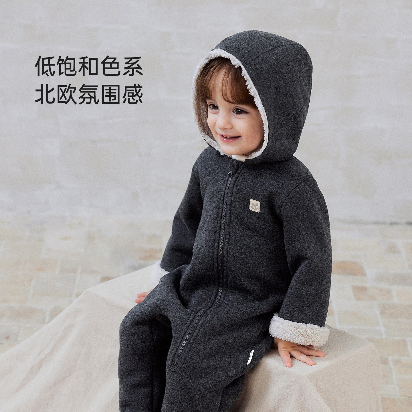babylove婴儿连体衣冬季保暖加绒连帽外出服男女宝宝哈衣纯色衣服