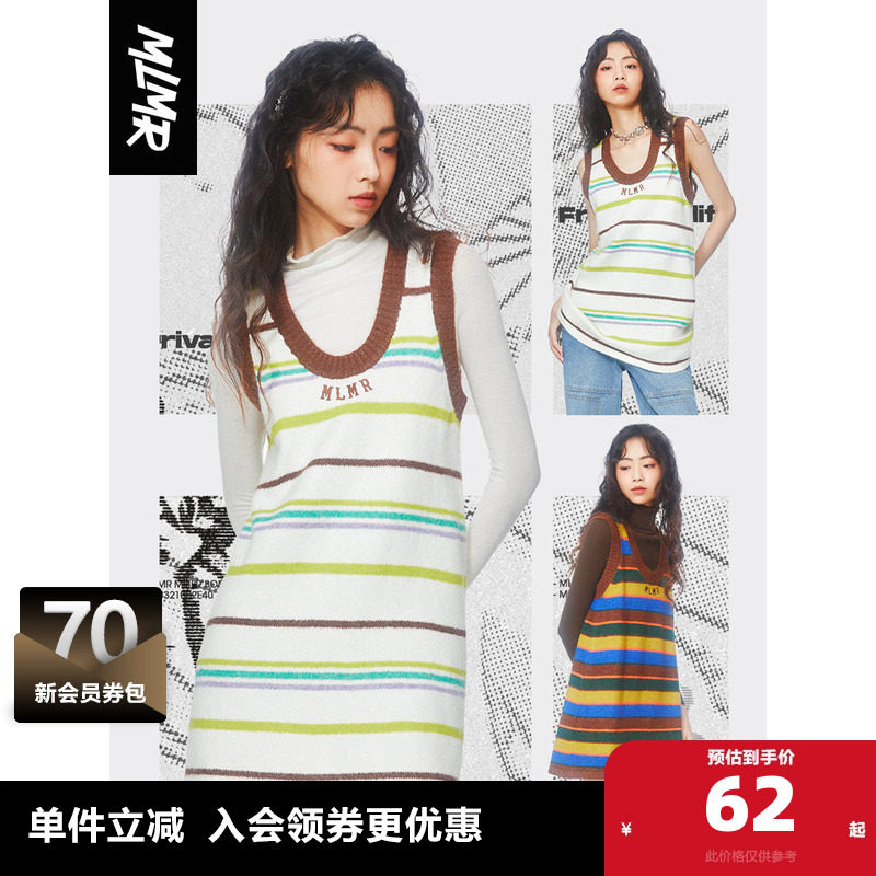 MLMR outlets秋装多巴胺穿搭女装长裙背带裙条纹复古连衣裙男装