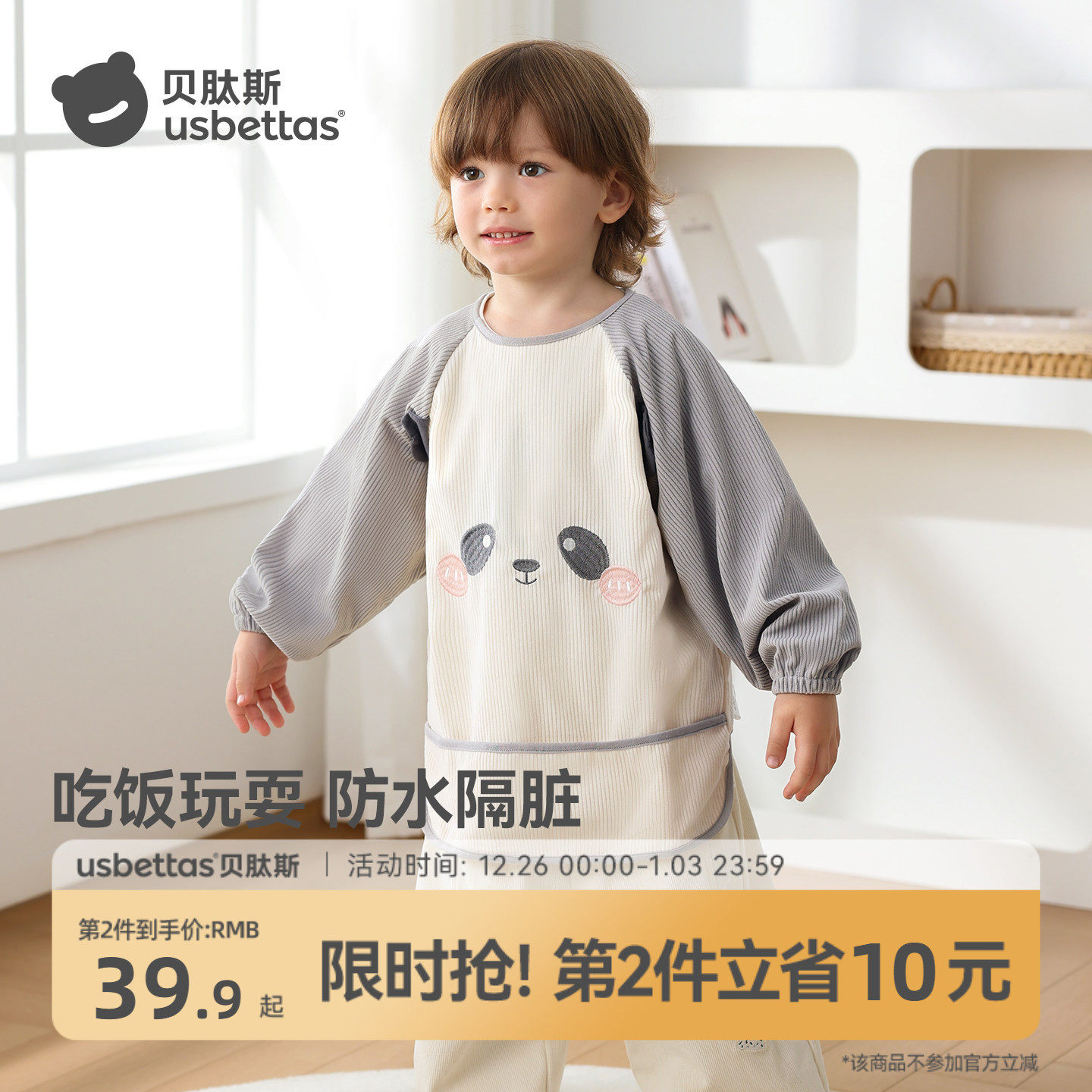 贝肽斯宝宝罩衣防水防脏婴儿吃饭围兜加厚灯芯绒冬天外穿儿童围裙