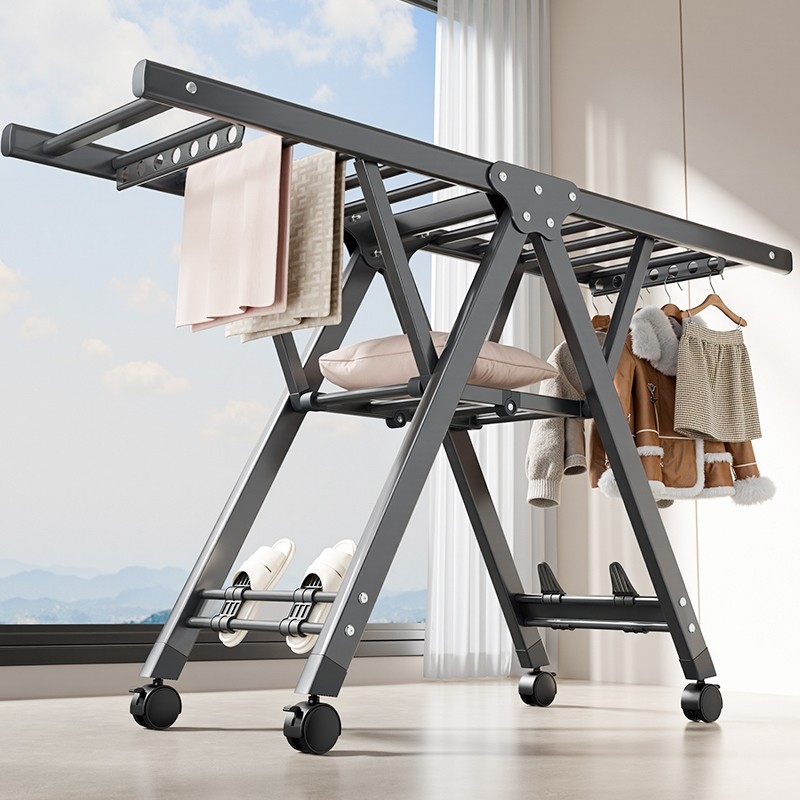 折叠晾衣架落地室内家用阳台铝合金卧室晒衣架新款凉衣架晒被神器