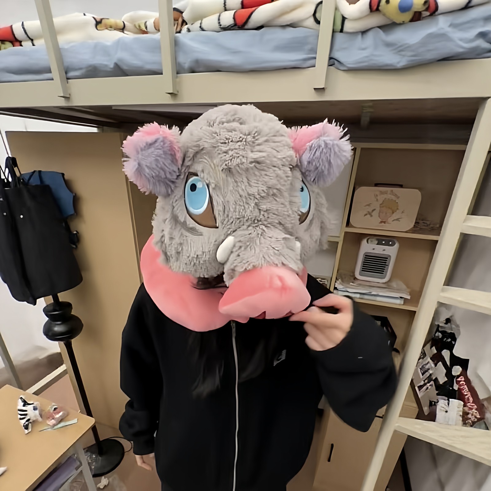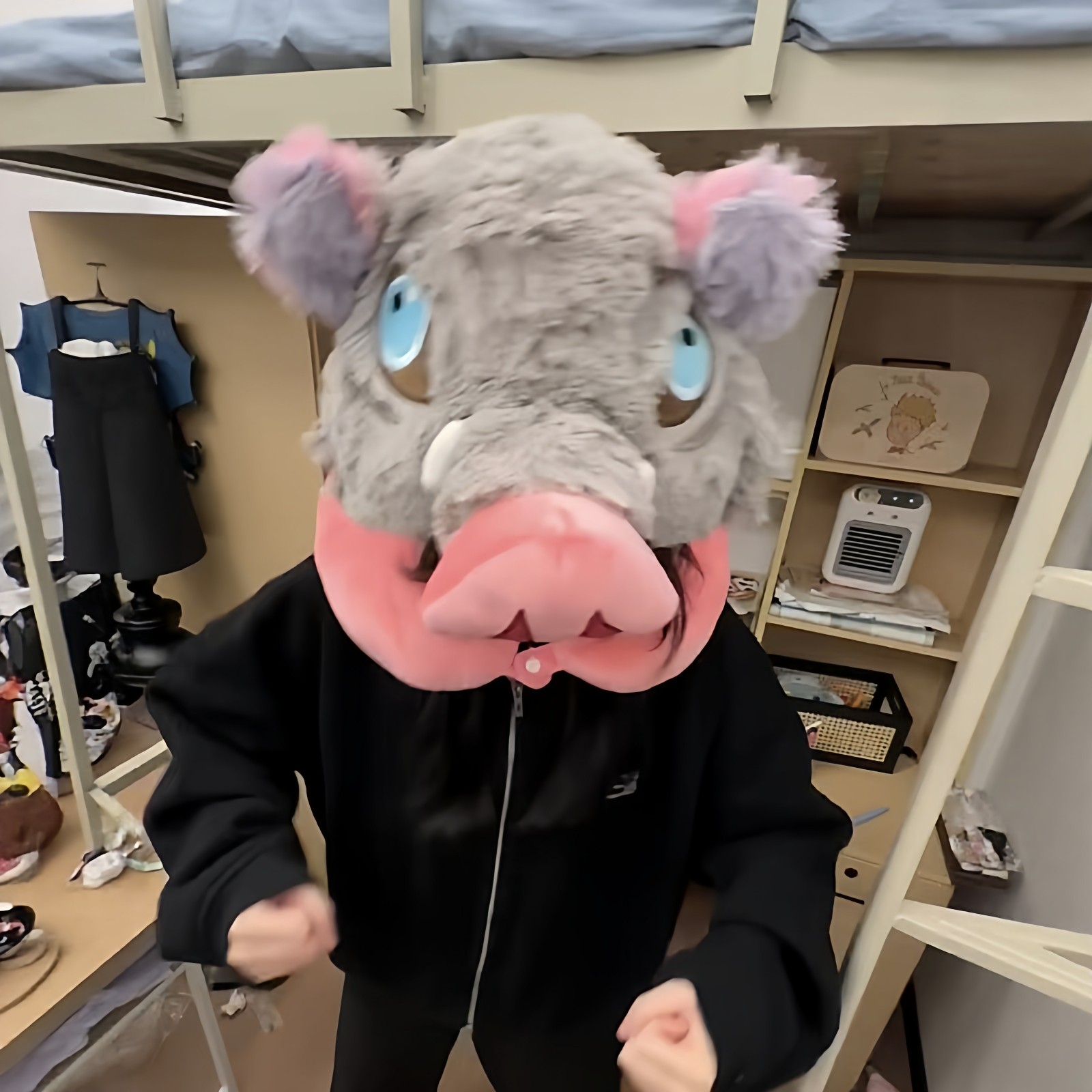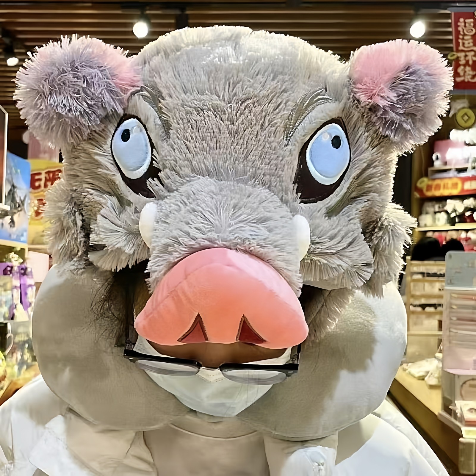 卡通鬼灭之刃周边嘴平伊之助猪猪连帽U型枕猪头头套帽子披风斗篷