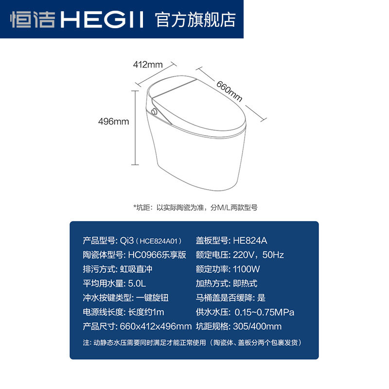 HEGII恒洁智能马桶全自动感应冲水电坐便器家用卫浴小户型Qi3