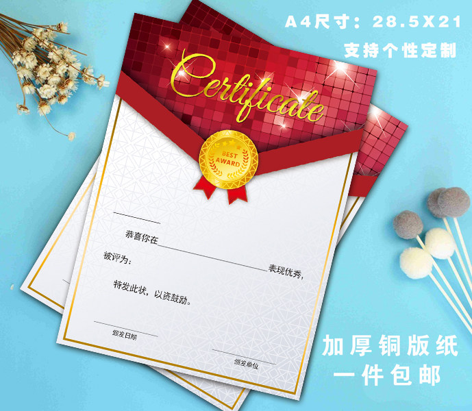 A4优质加厚版奖状 空白 通用奖状批发 可定制 幼儿园小学奖状