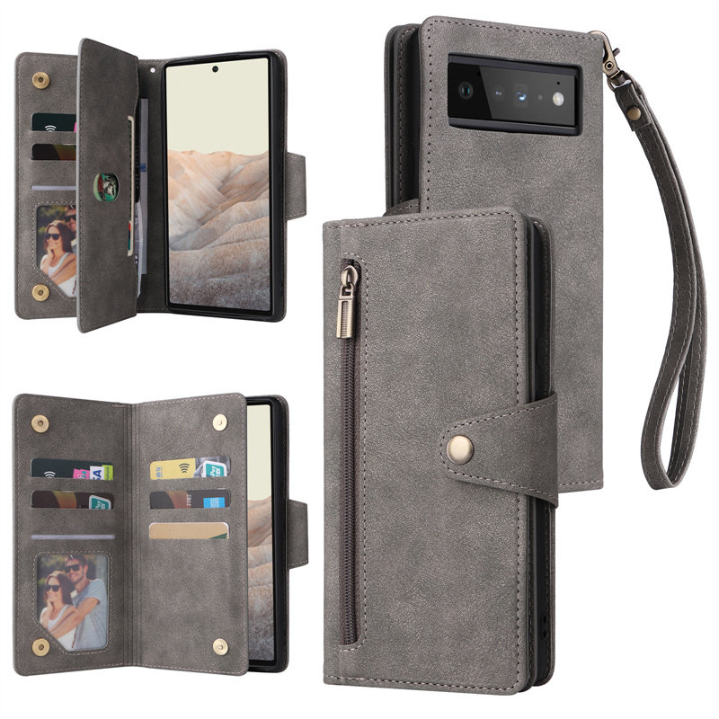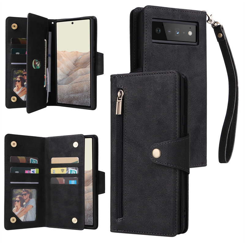 KUAIJIEWEI时尚适用于谷歌8pro铆钉扣拉链Pixel 7a插卡pixel 6钱包款手机皮套