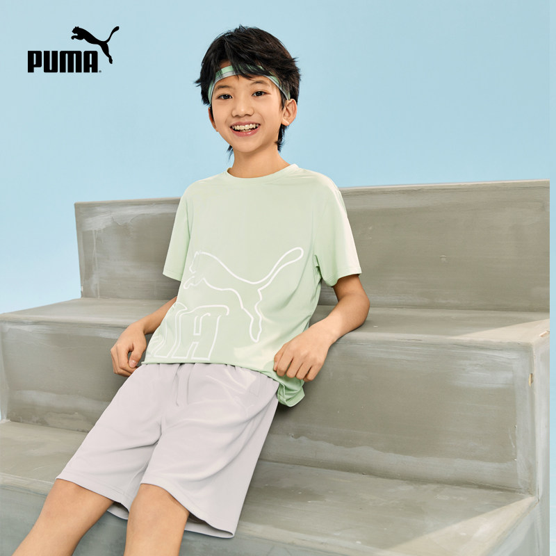 PUMA彪马儿童吸湿速干短袖短裤套装经典大logo潮流运动时尚2件套