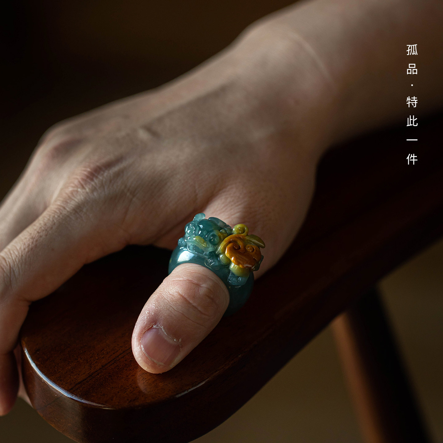 孤品【翡翠·如意】国风貔貅戒指招财玉石手饰本命礼物 一物一证