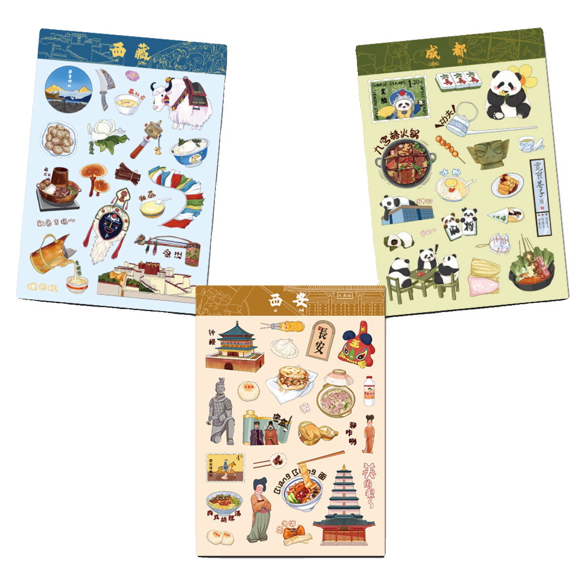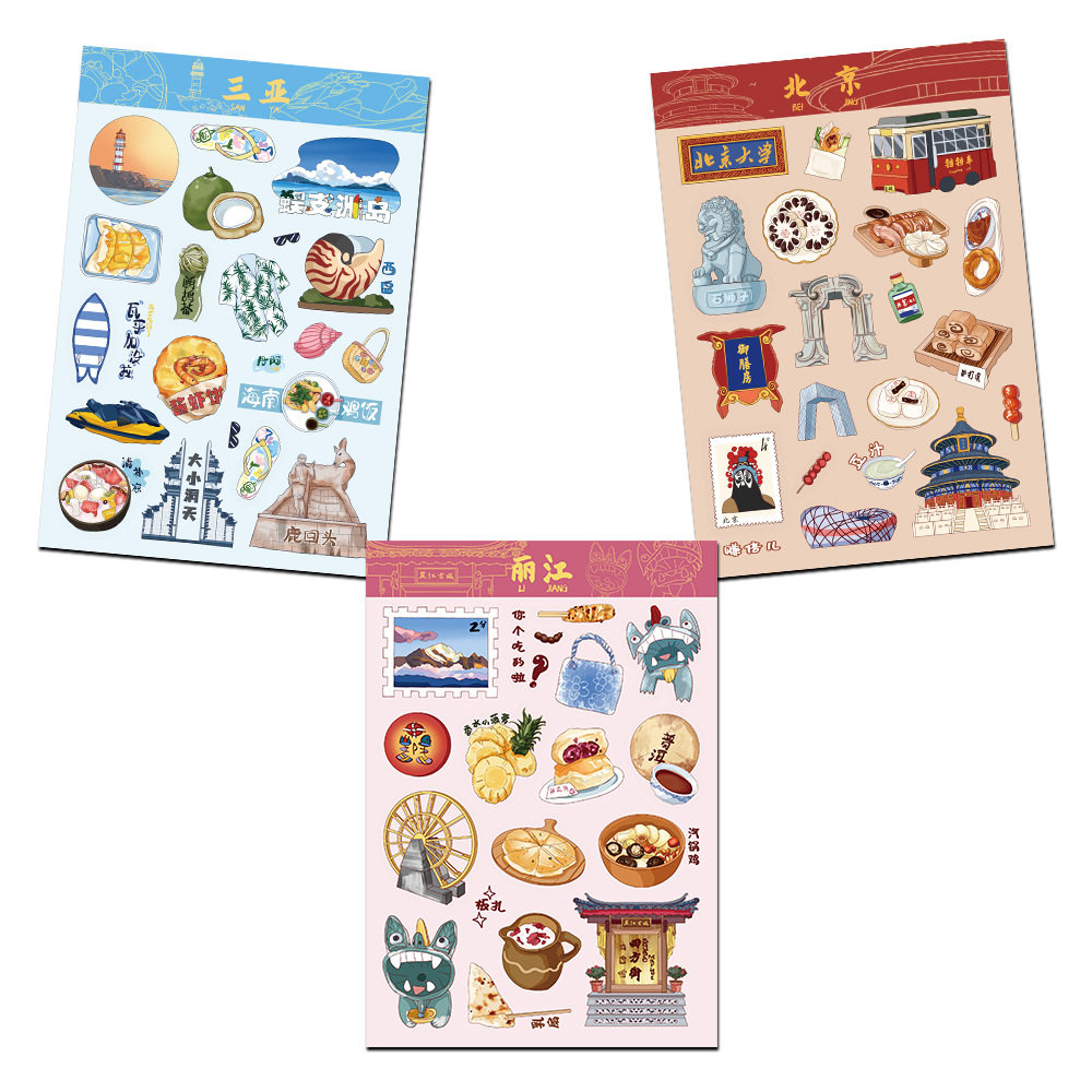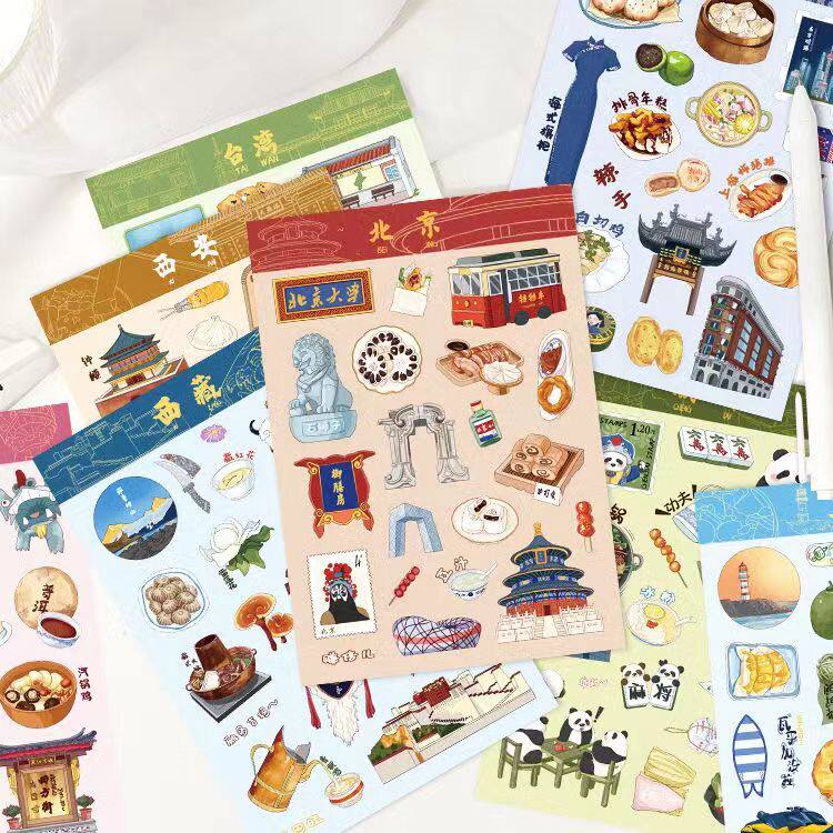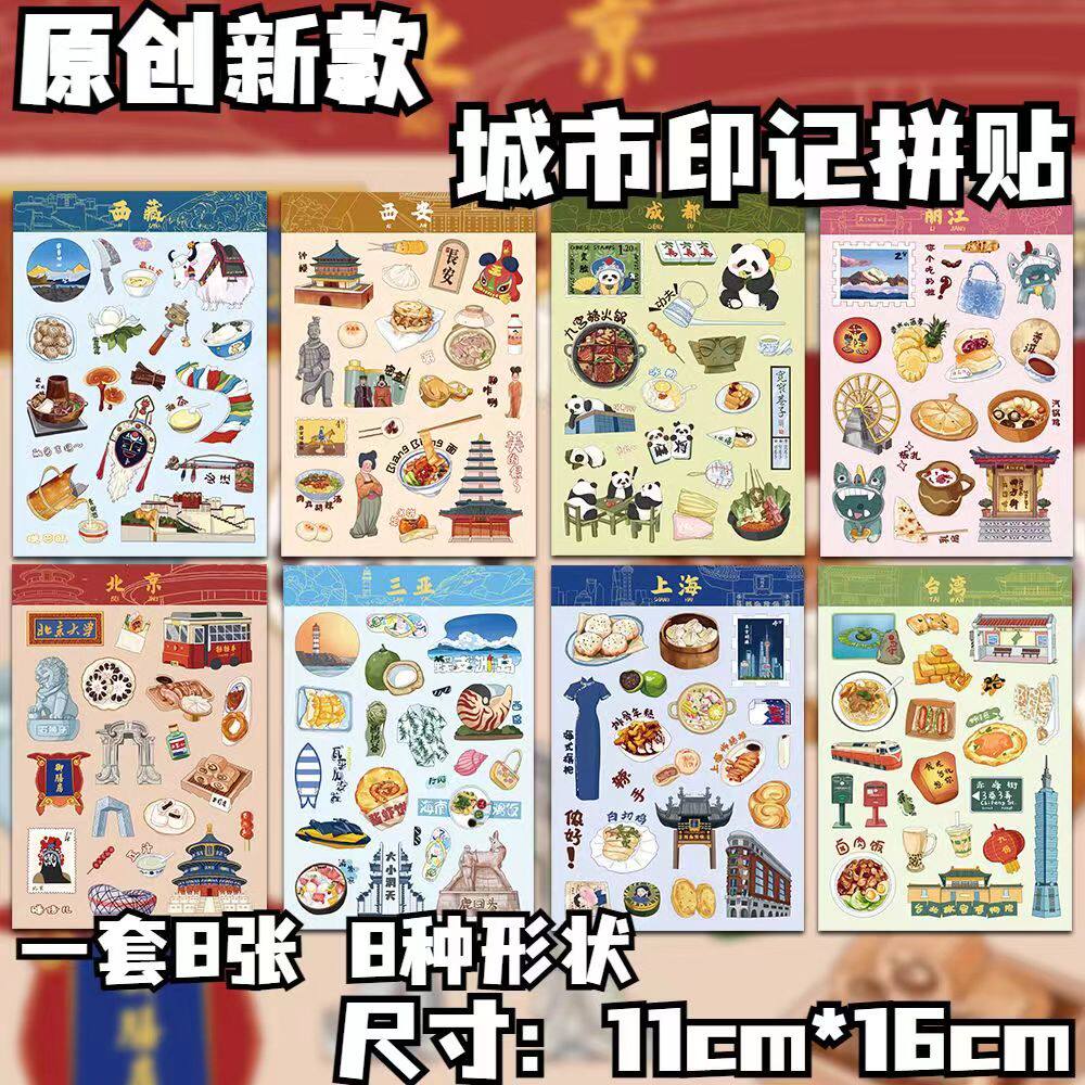 16张城市印记建筑美食小物件拼贴北京上海成都西安笔记本装饰贴纸