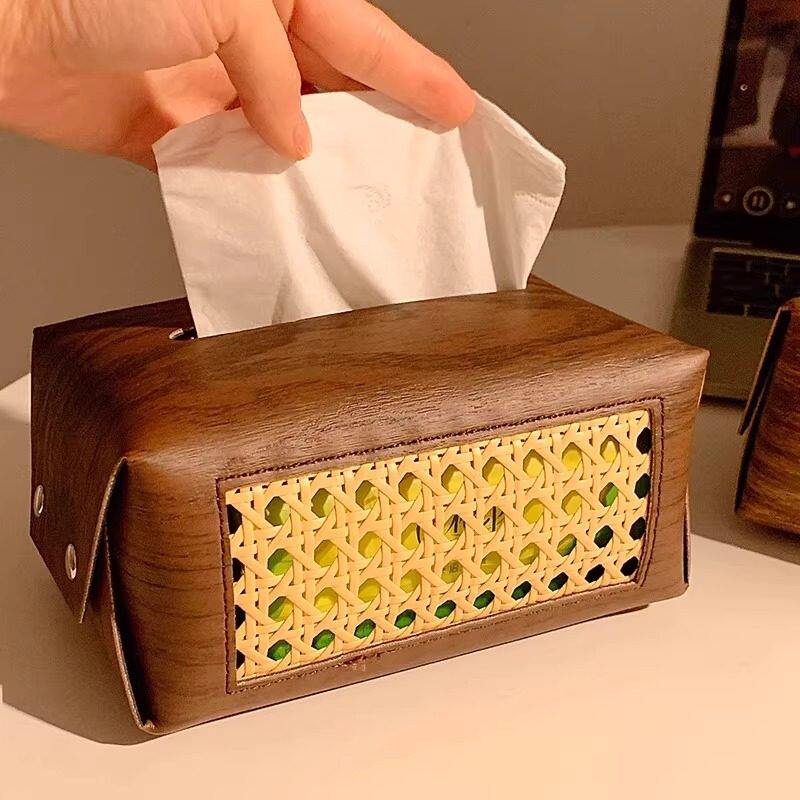 中古风纸巾盒客厅家用复古藤编抽纸盒高级感轻奢纸抽盒纸巾收纳盒