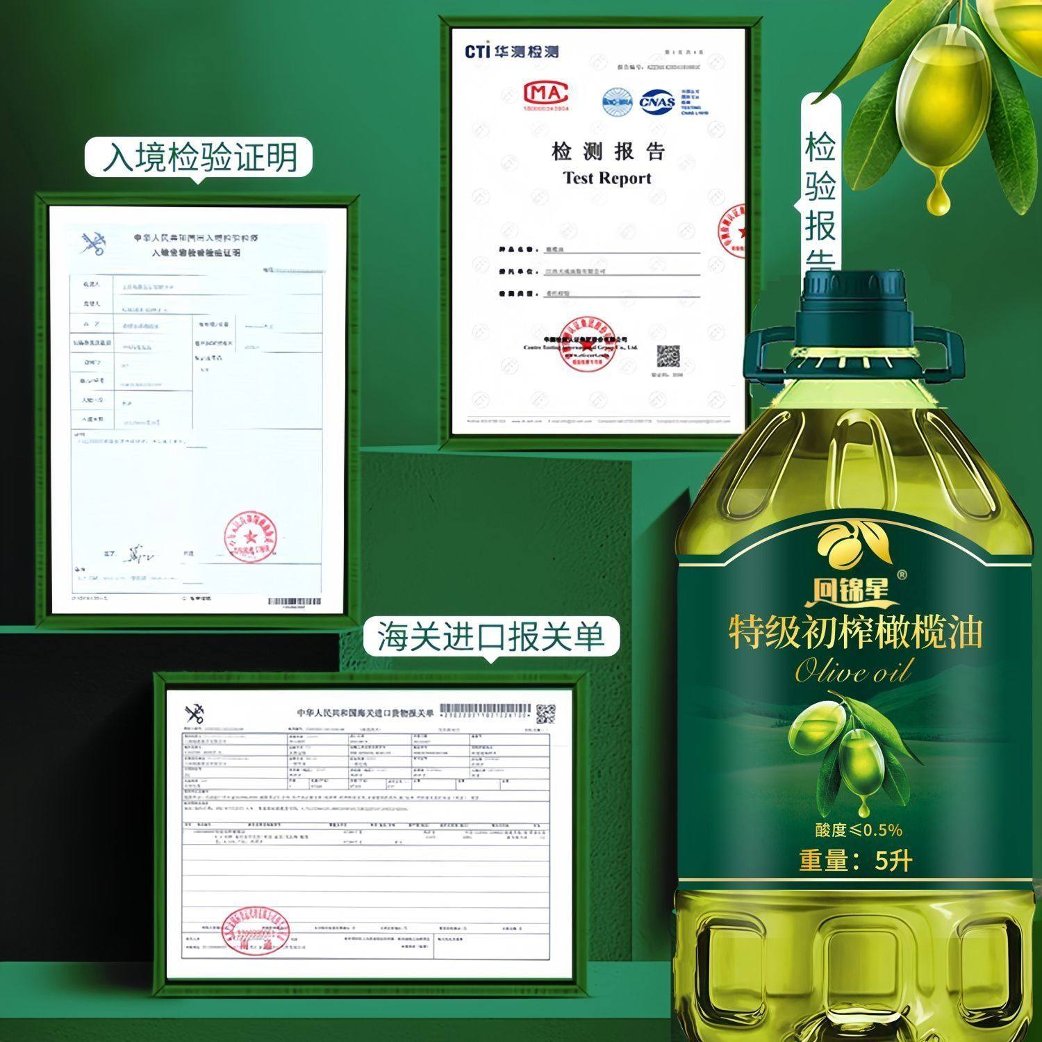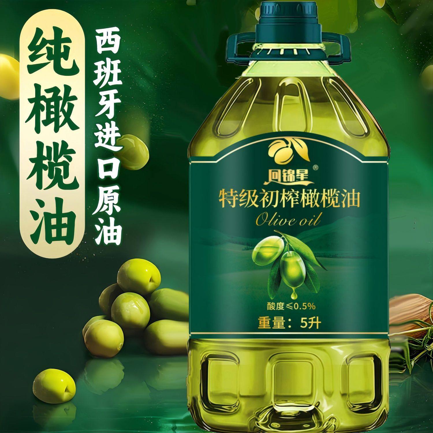 纯正橄榄油5L装特级初榨橄榄油无添加炒菜低脂健身食用油官方正品