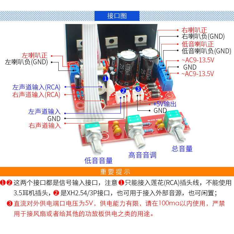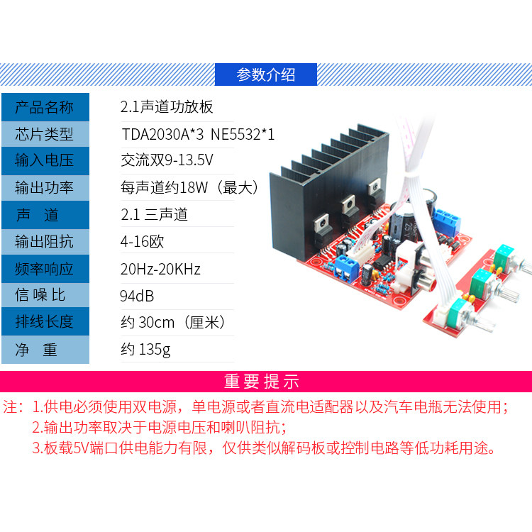 TDA2030A发烧HIFI超重低音2.1电脑大功率3声道低音炮功放成品板