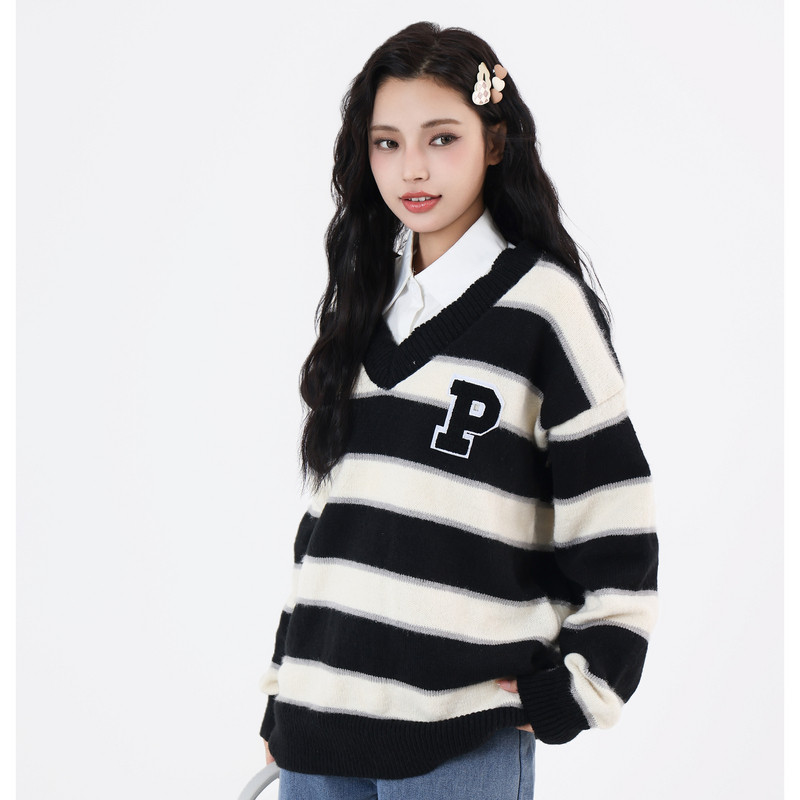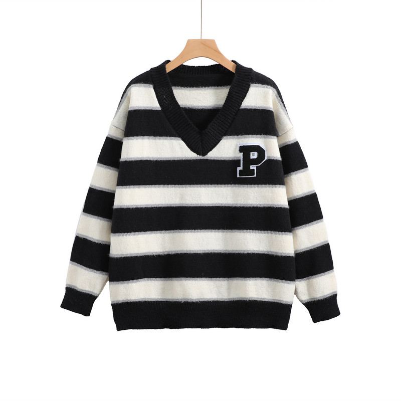 条纹时髦休闲简约潮流慵懒风女款毛衣