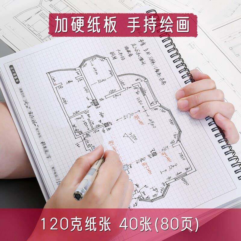 设计师量尺本A4量房本室内装修测量专用本设计笔记本子装潢全屋定制整体橱柜公司加厚纸方格线 线圈本测量A3