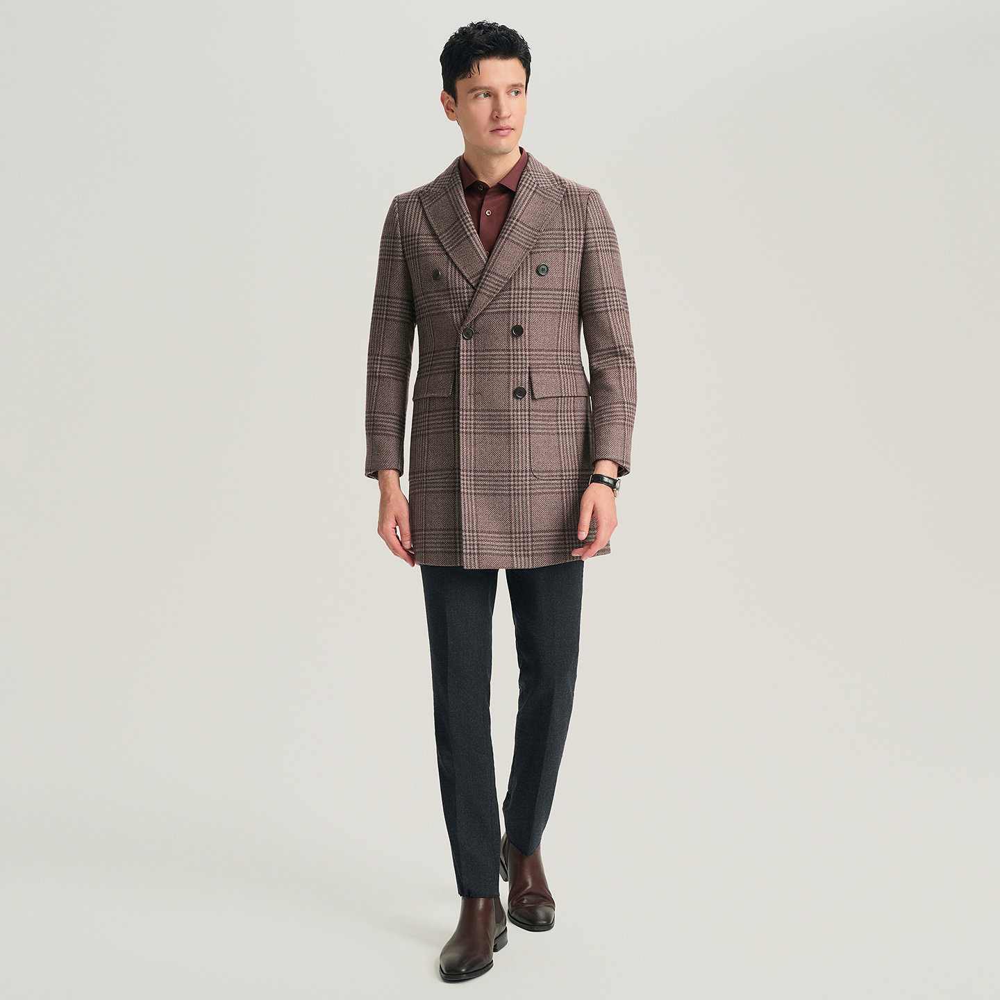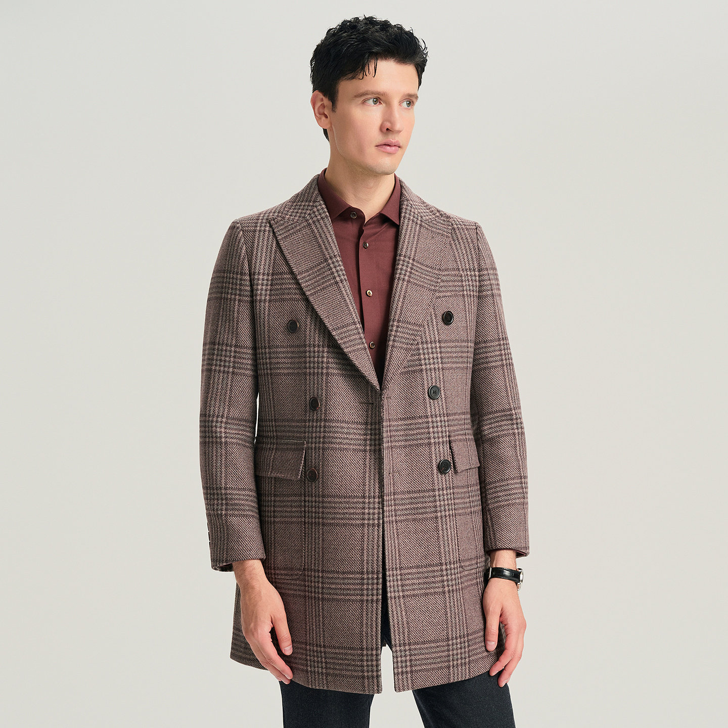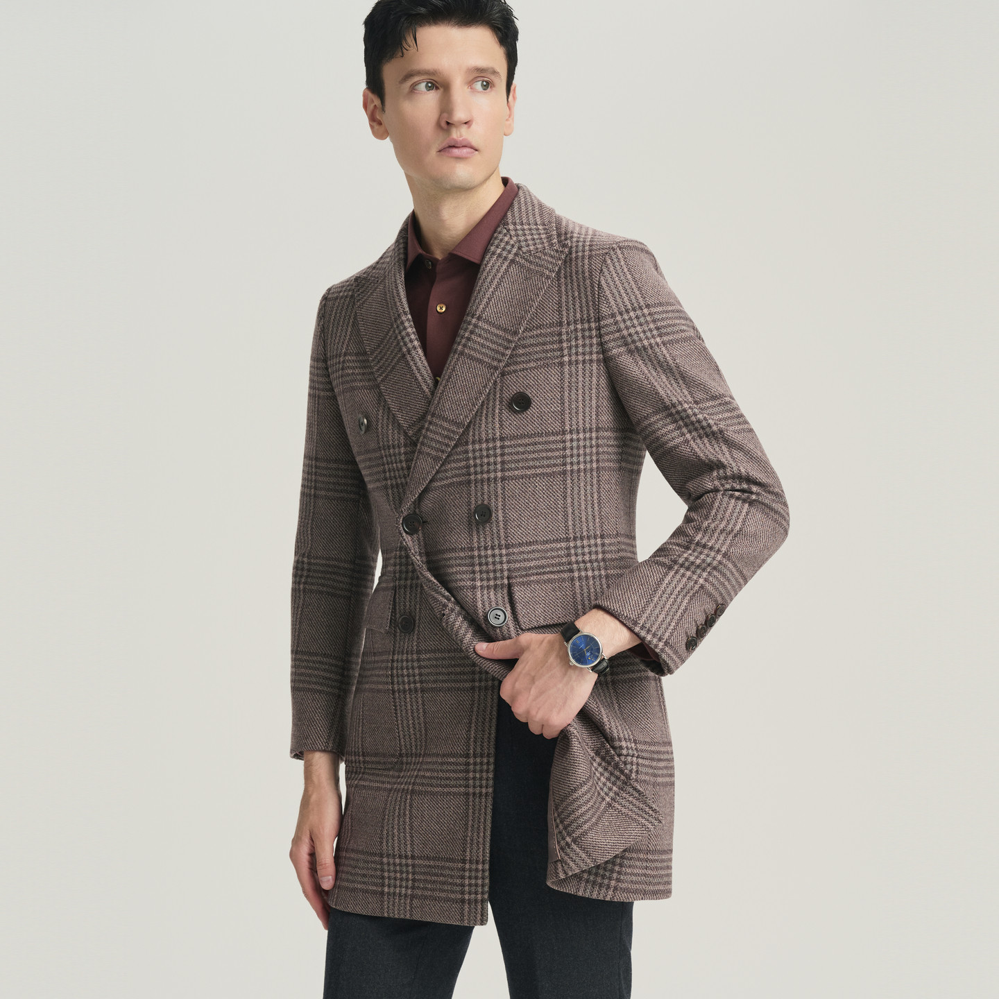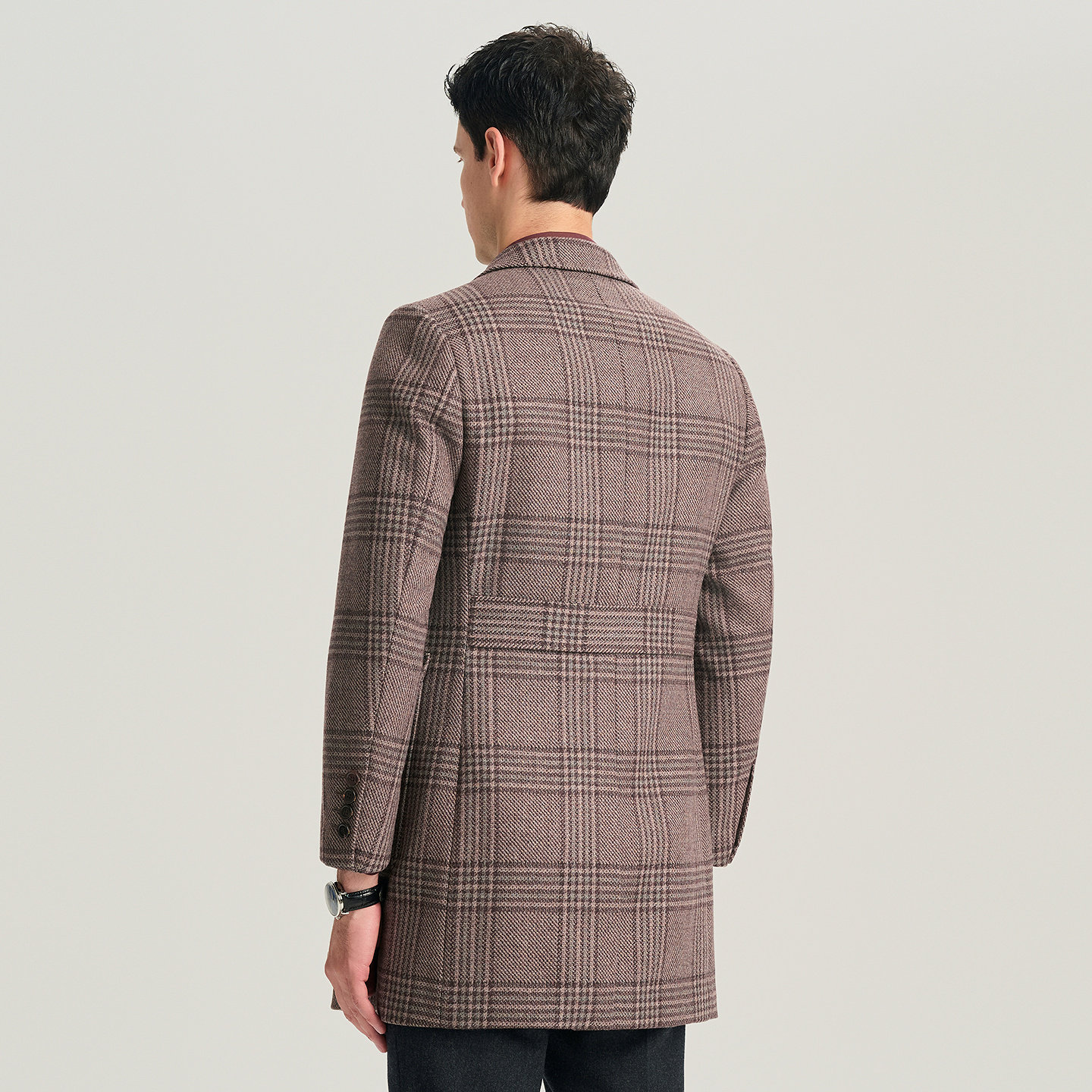 jodoll乔顿西装领中长款毛呢大衣男士25年冬浅咖色格纹双排扣外套