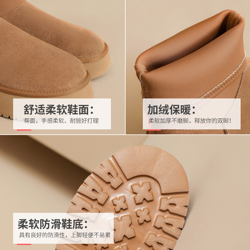 油叽叽~真皮羊毛雪地靴女冬季加绒加厚保暖棉靴厚底增高短筒靴子