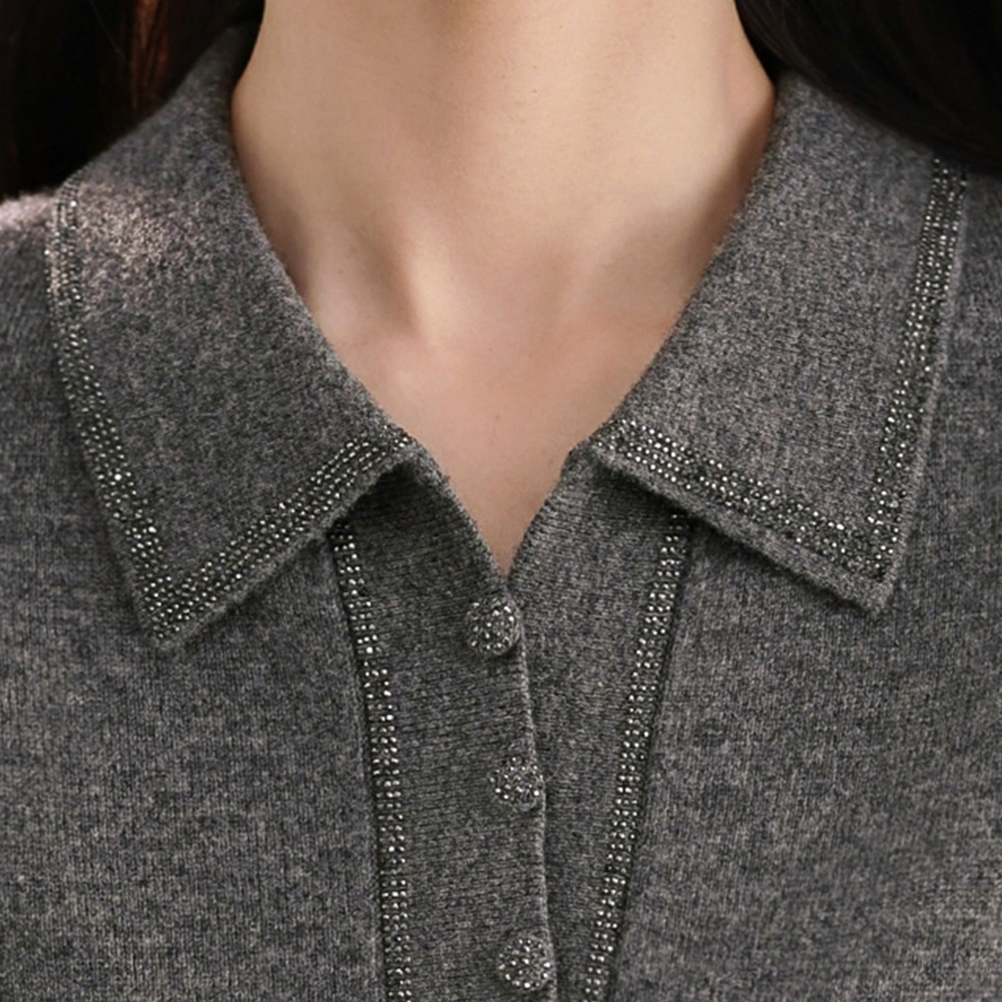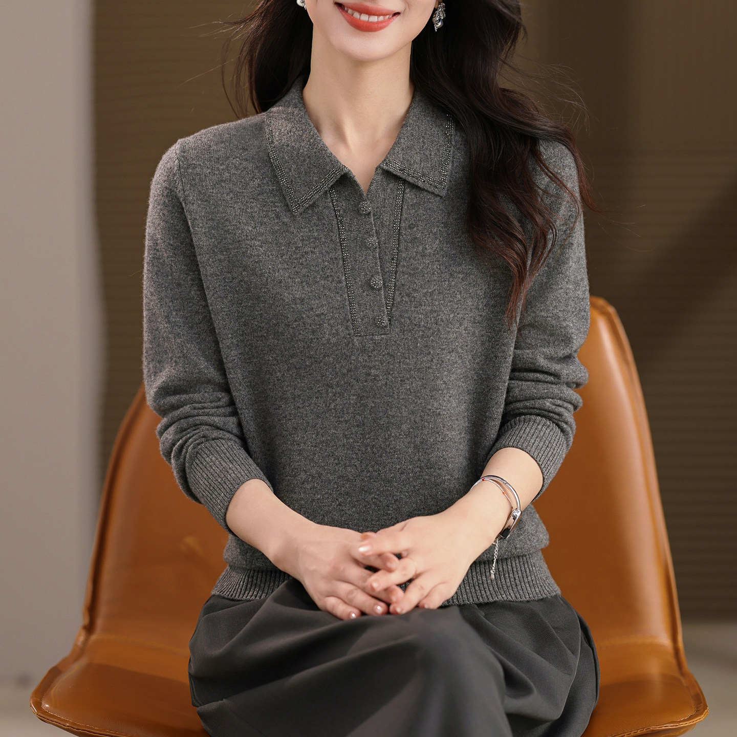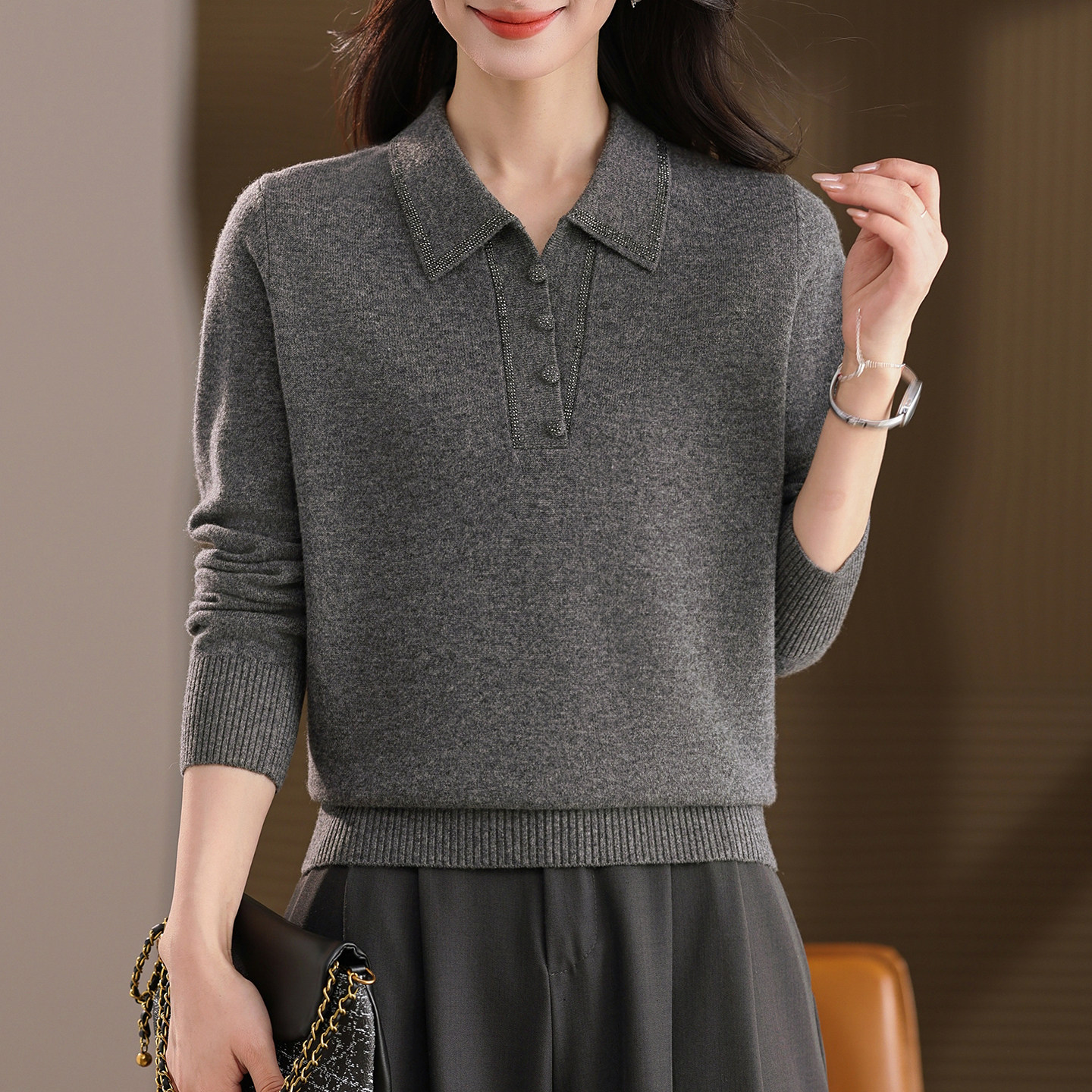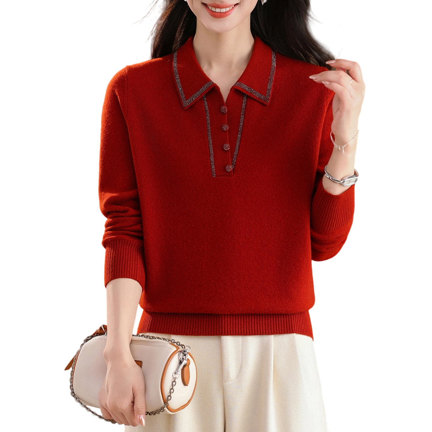 恒源祥翻领100%羊毛衫女纯色打底衫针织衫上衣新款毛衣百搭妈妈装