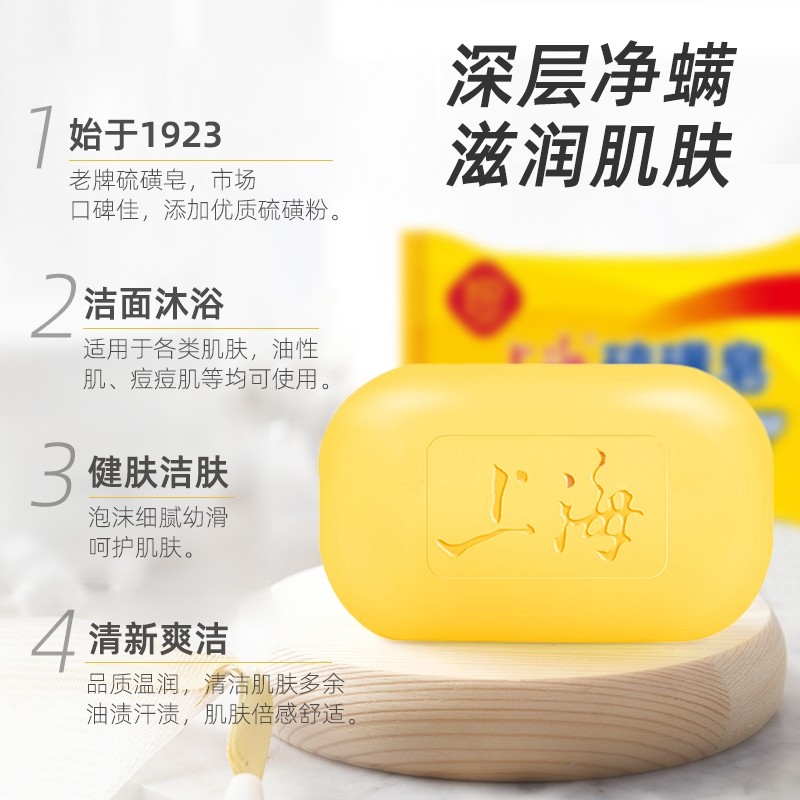 上海硫磺皂除螨祛痘抑菌男女士洗手洗脸洗澡沐浴温和爽洁清洁肌肤