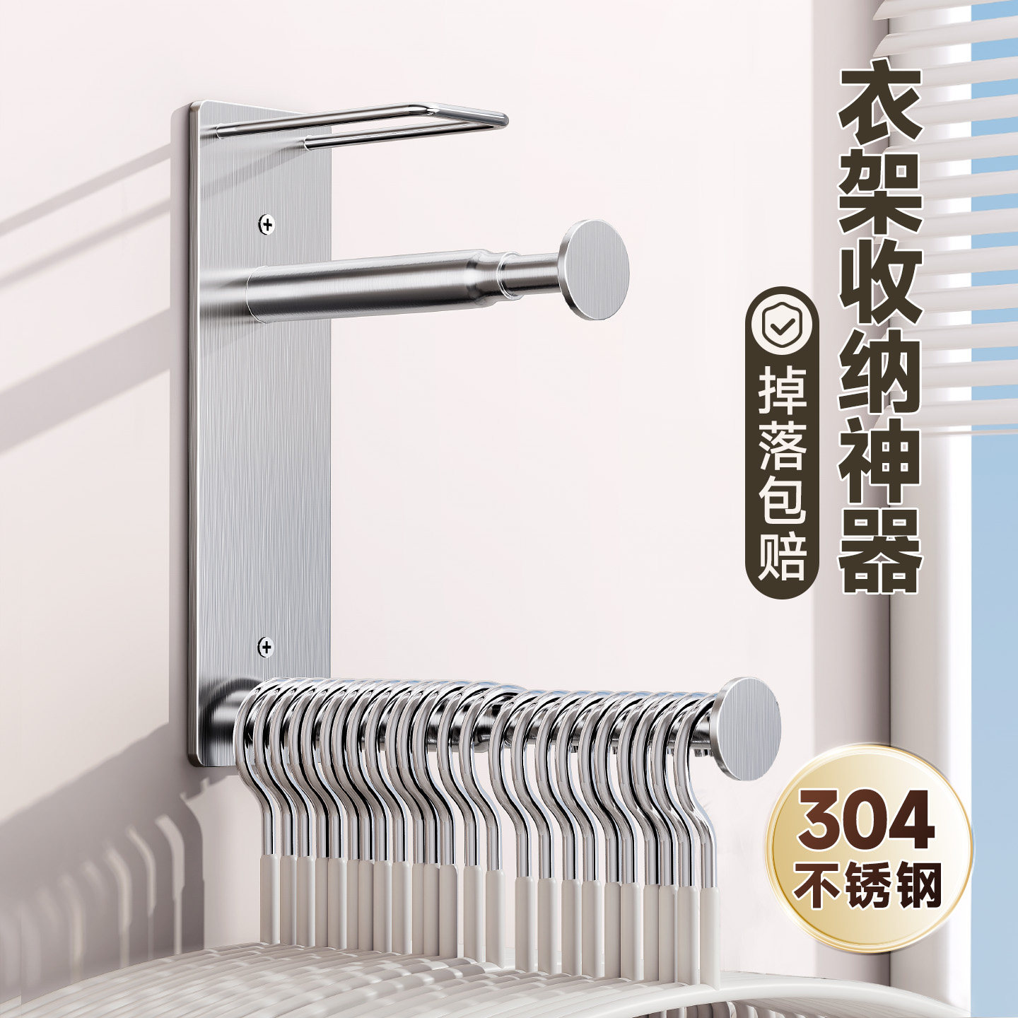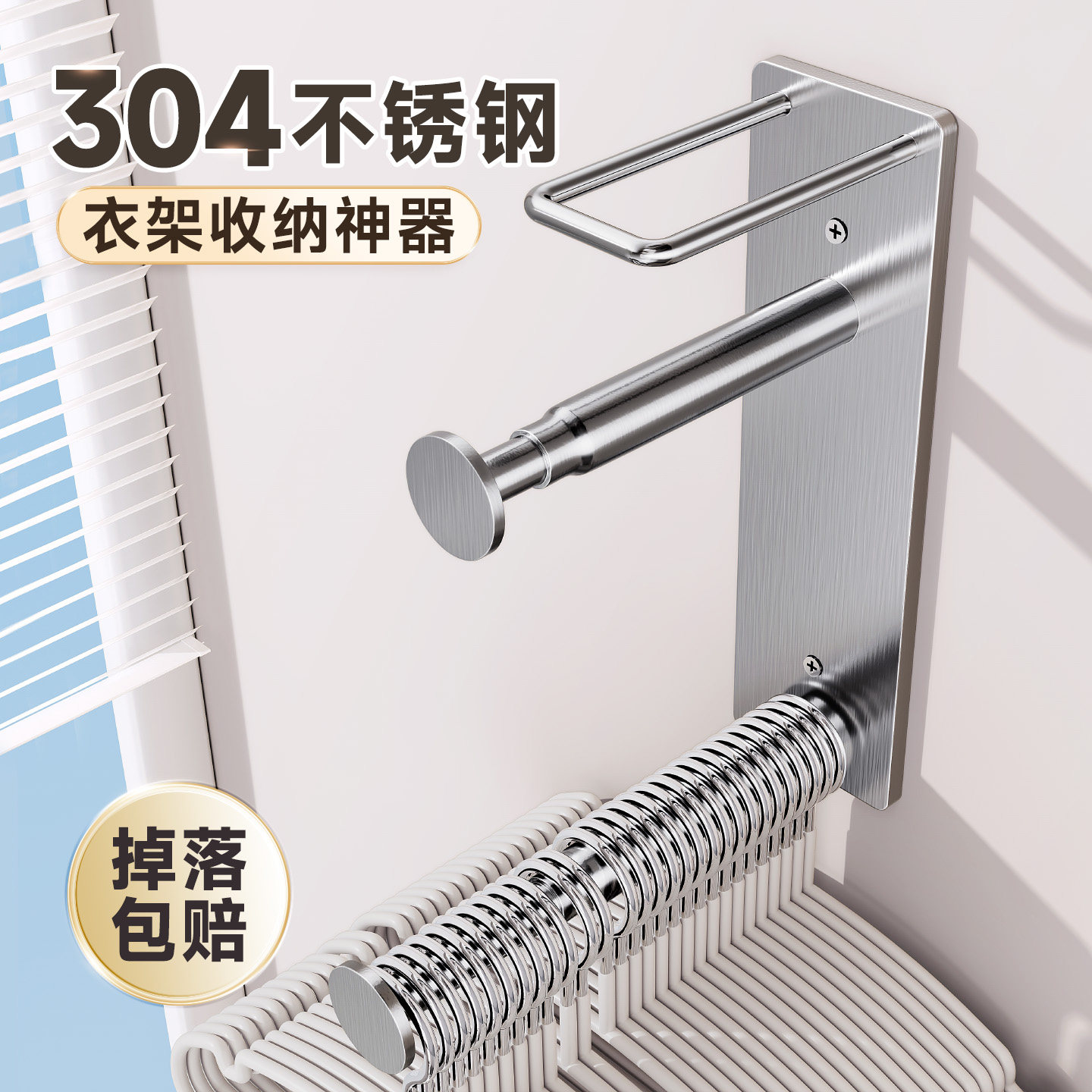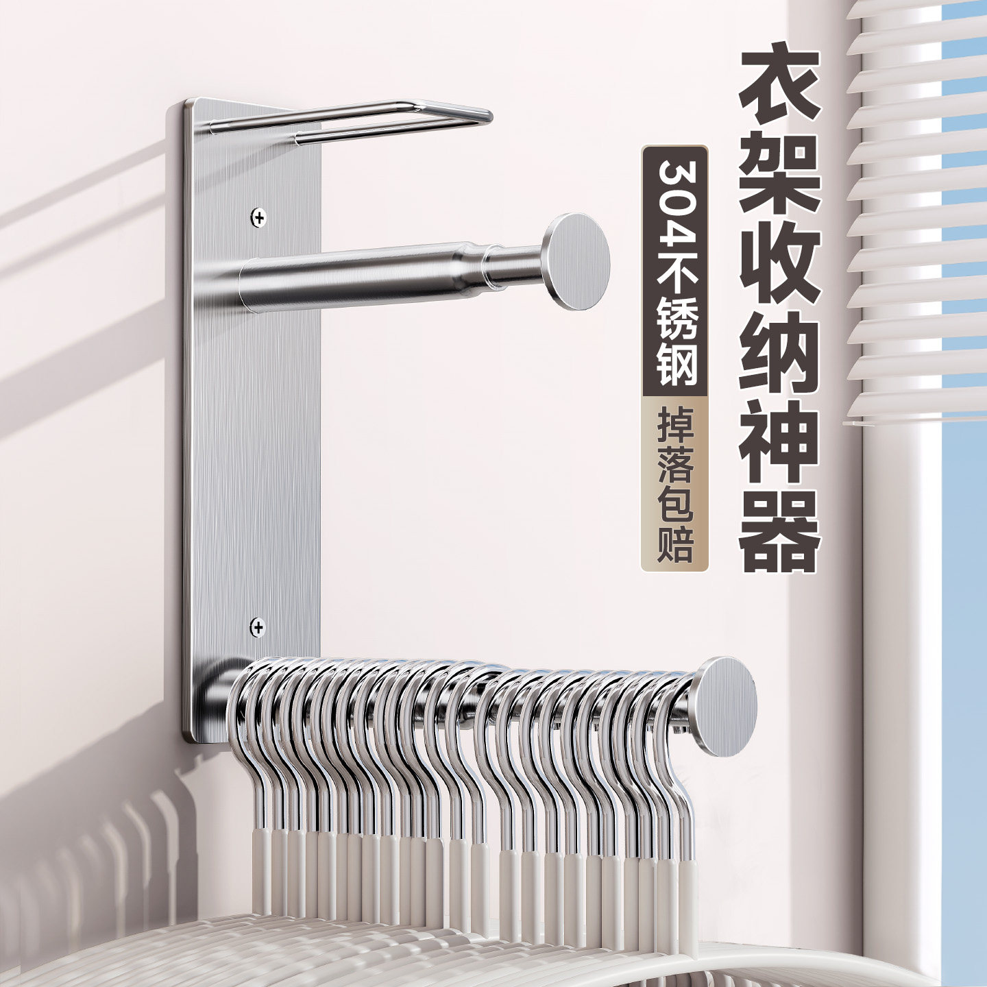 衣架收纳神器家用免打孔阳台置物挂衣架上墙伸缩304不锈钢晾衣架