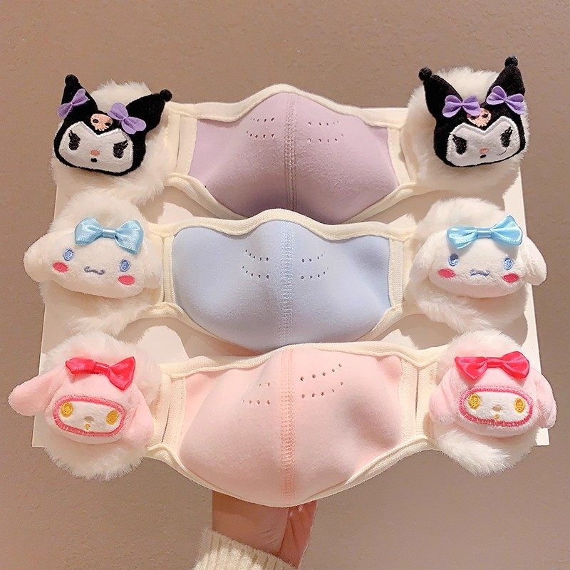 保暖加绒耳罩口罩一体女童冬天防风耳包耳暖小女孩库洛米德绒护耳