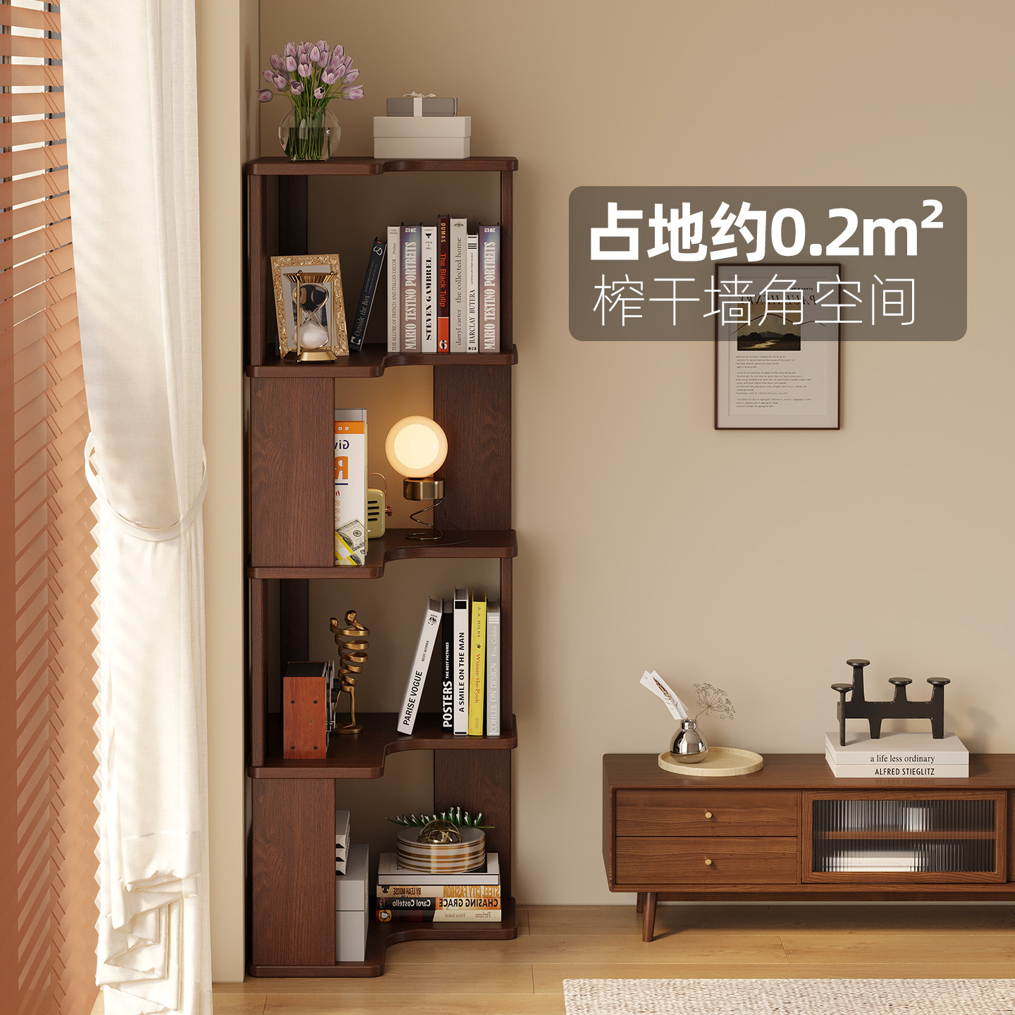 实木转角书架落地置物架客厅角柜墙角储物柜拐角床头书柜收纳家居