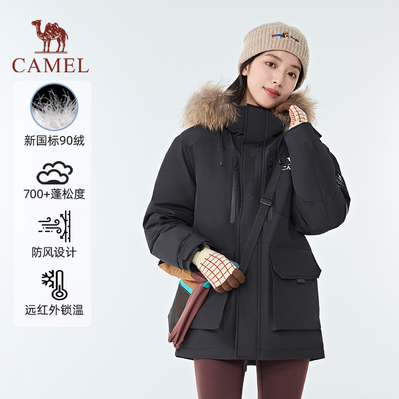 骆驼女装派克羽绒服2025年冬季新款加厚保暖毛领连帽工装羽绒外套