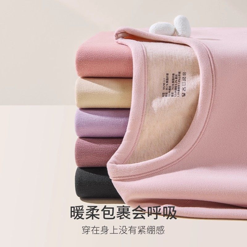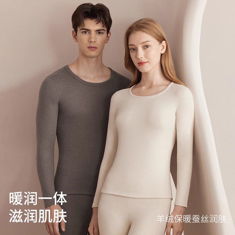 德绒保暖内衣套装秋衣秋裤秋冬季羊毛蚕丝女打底衫加绒双面山羊绒
