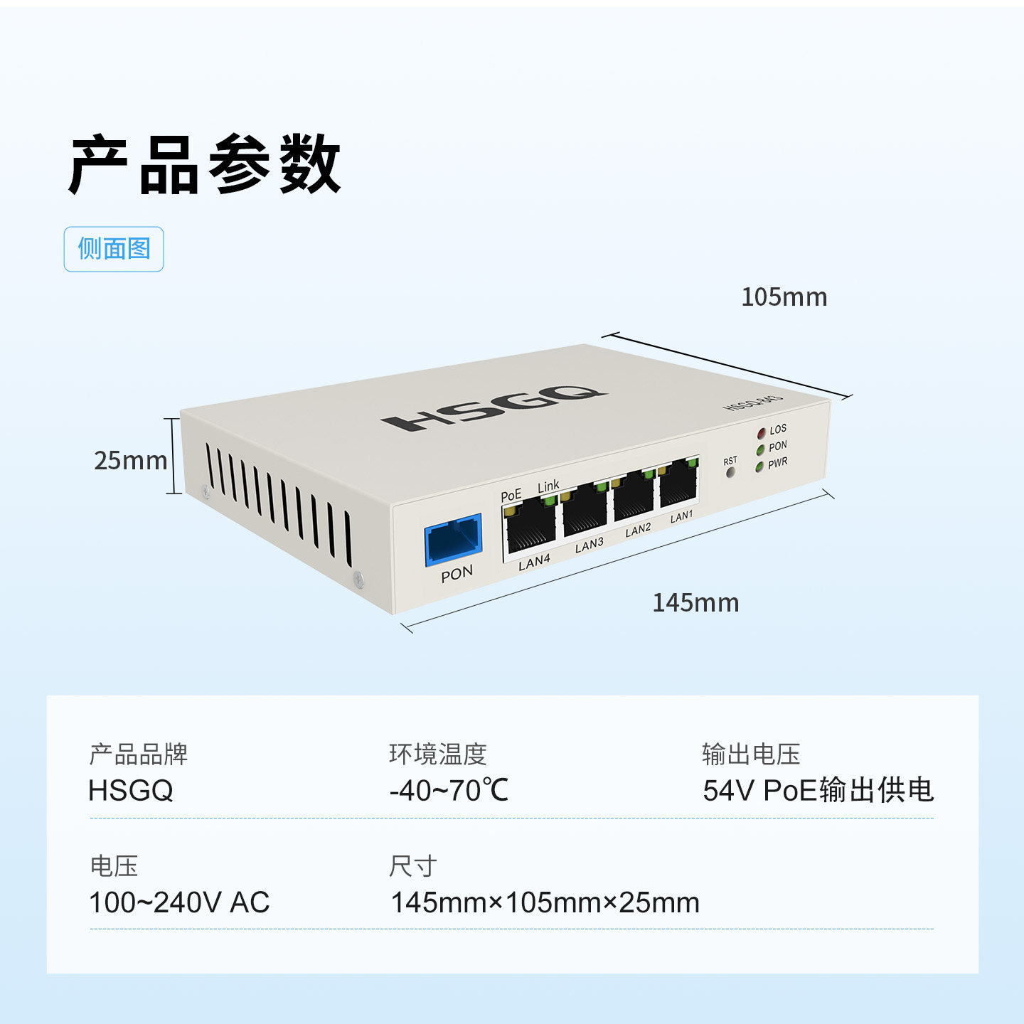 HSGQ鸿升2025新款POE工业级光猫4口/8口千兆光接入网用户端ONU铁壳安防供电监控专用6KV防雷工业级光纤猫设备