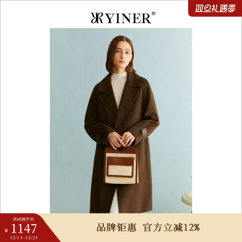 【绵羊毛+羊绒】YINER音儿专选女装冬季双面毛呢大衣外套