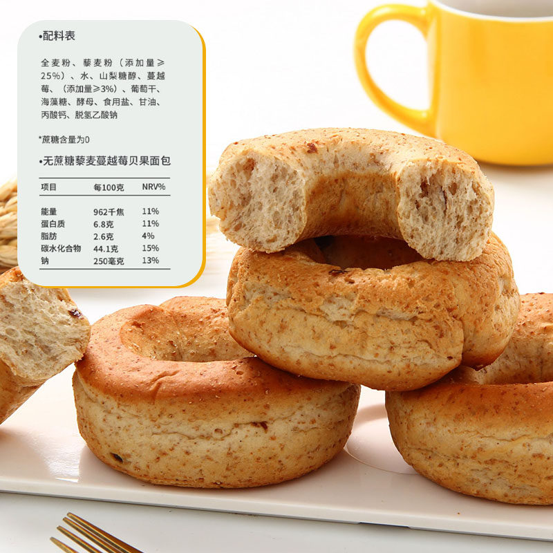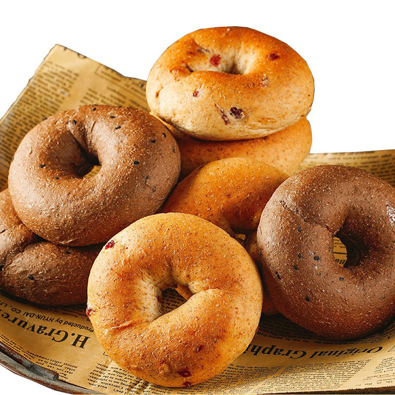 全麦贝果黑麦手撕面包整箱无糖精低脂粗粮面包圈代餐饱腹早餐食品