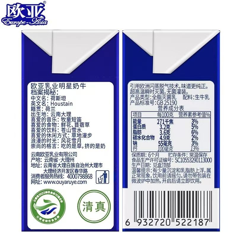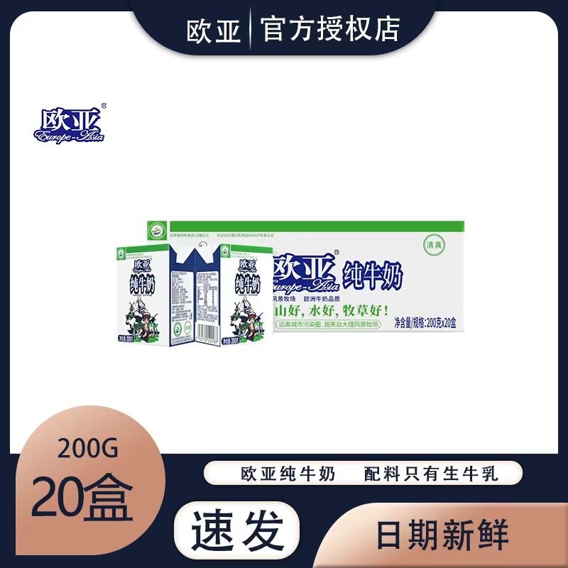 欧亚高原全脂纯牛奶200mlg*20盒整箱批发儿童学生早餐奶生牛乳