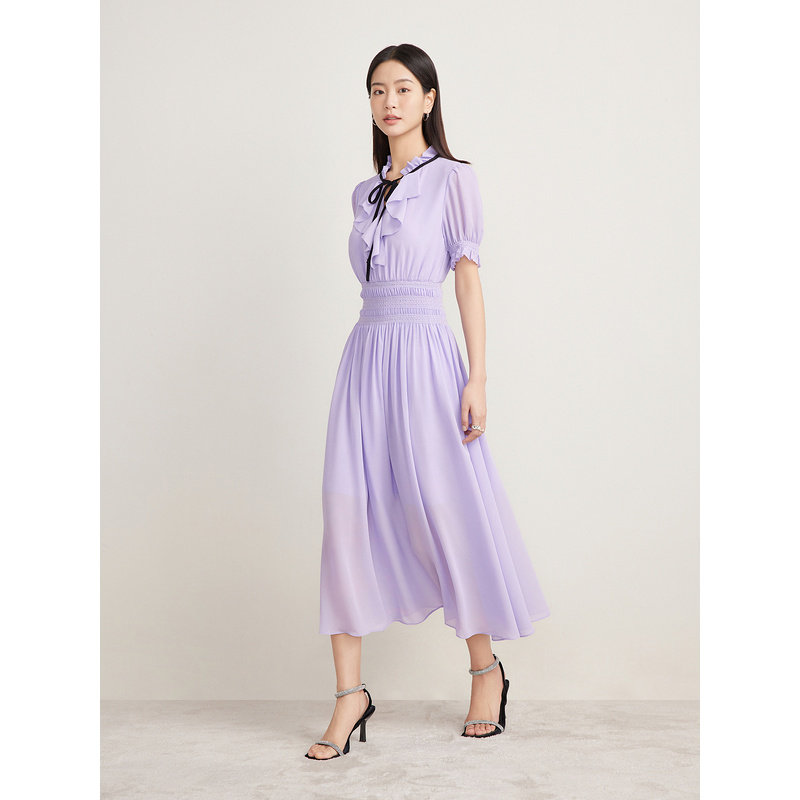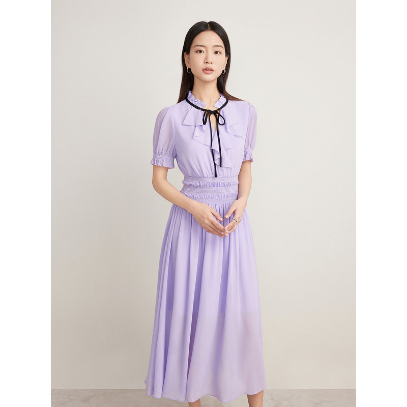 Goodland美地夏季法式风情褶仙女裙荷叶边连衣裙