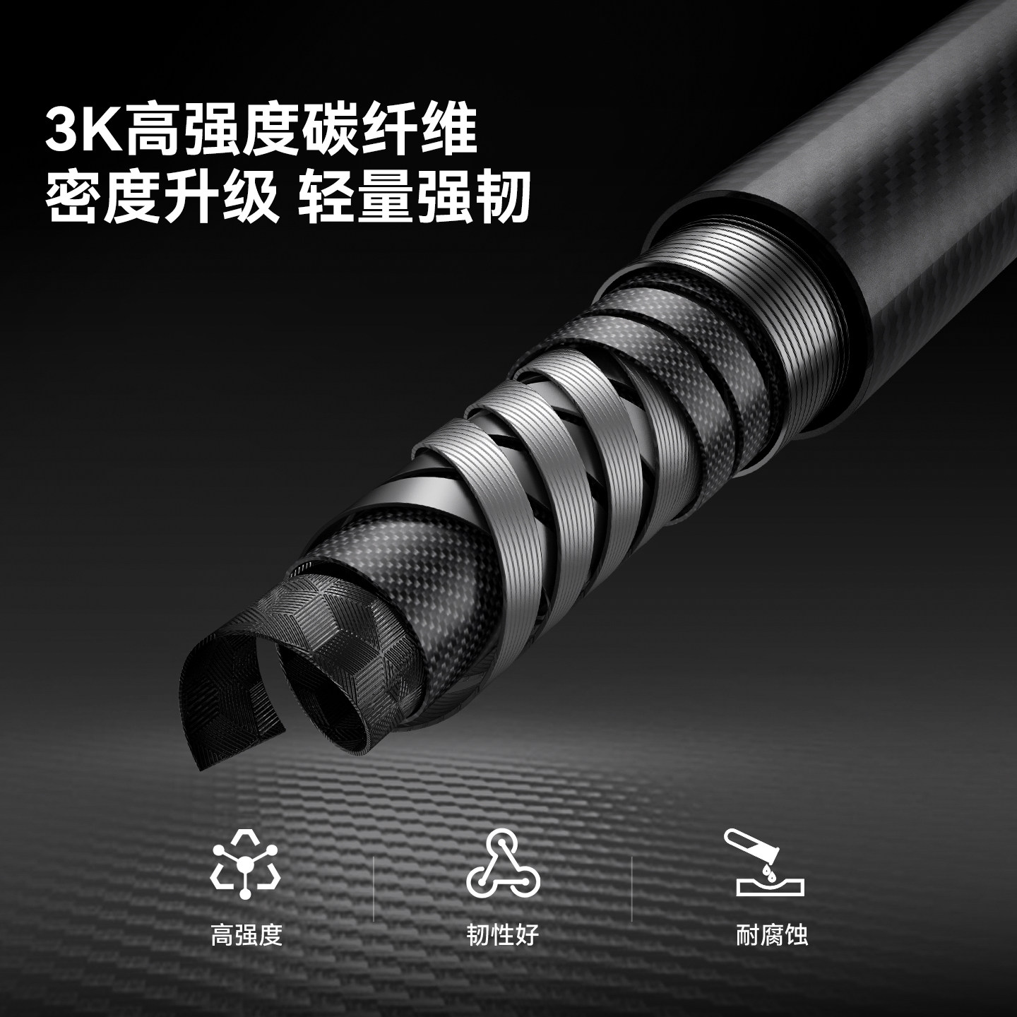 3k碳纤维材质超轻便携 Z字折叠 牢固强韧