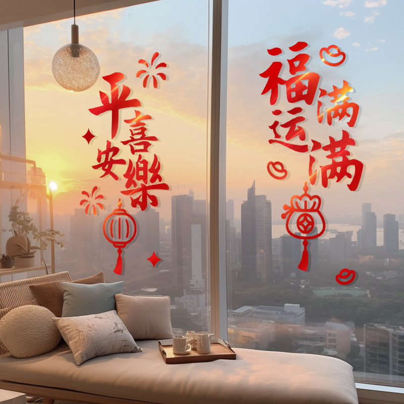 新年装饰品贴纸2026过年氛围布置马年春节静电窗贴新款窗花玻璃贴
