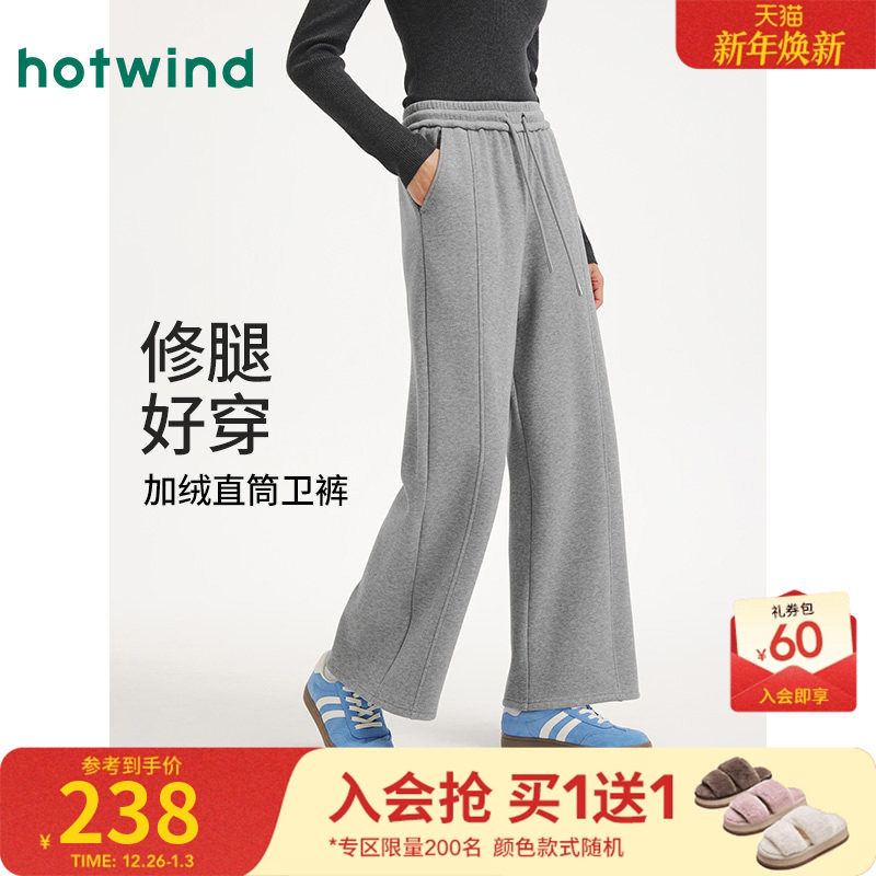 热风女士加绒卫裤2025年冬季新款经典抽绳绒感加厚直筒卫裤百搭