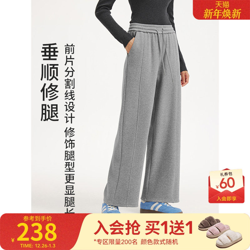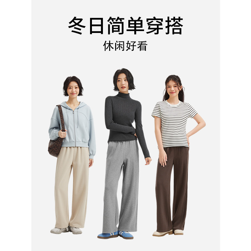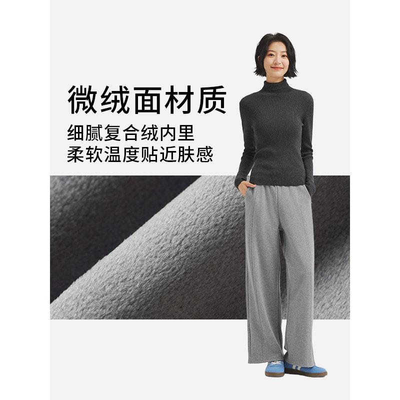 之塑美式松弛感休闲裤加绒加厚内衬防透宽松直筒阔腿莫代尔卫裤女