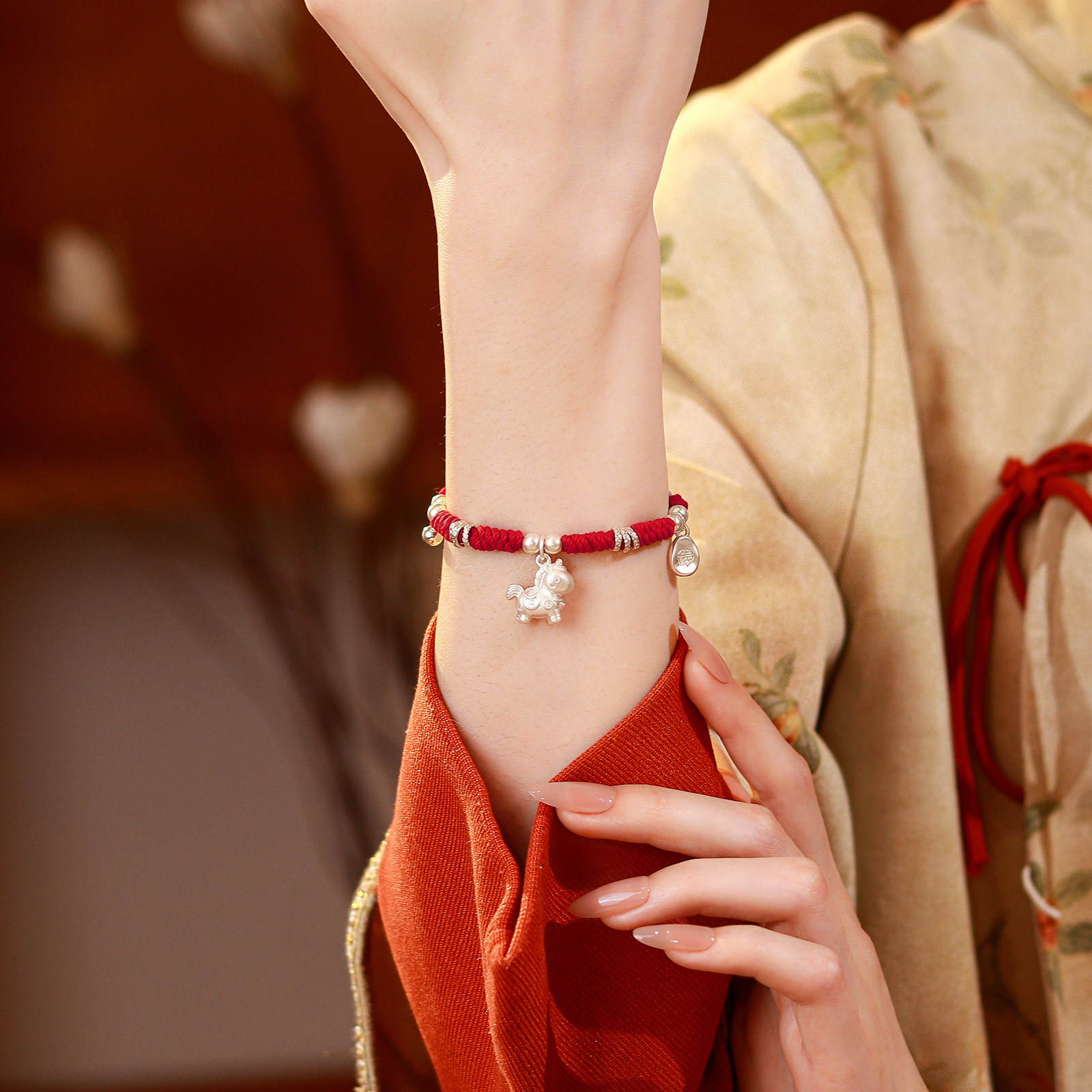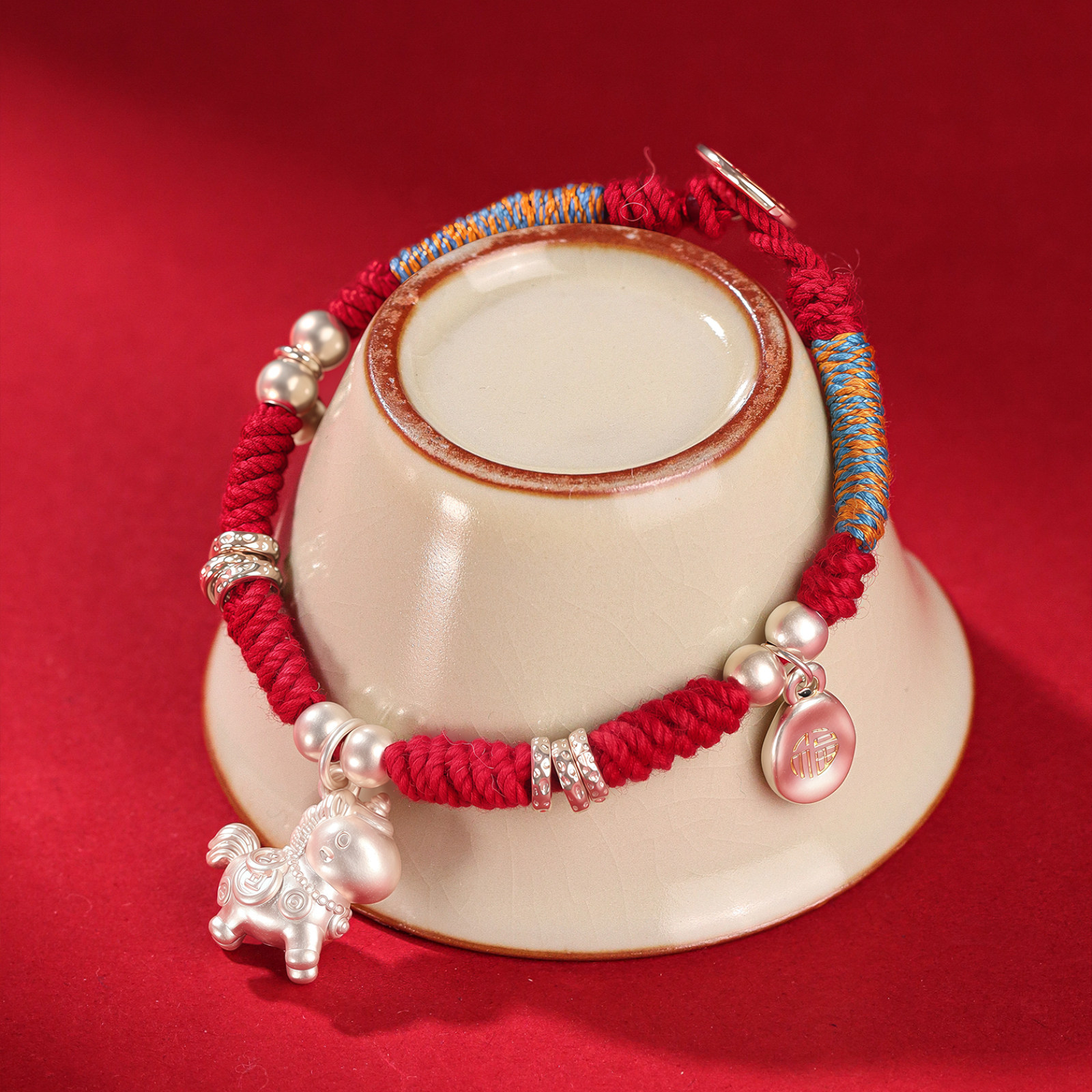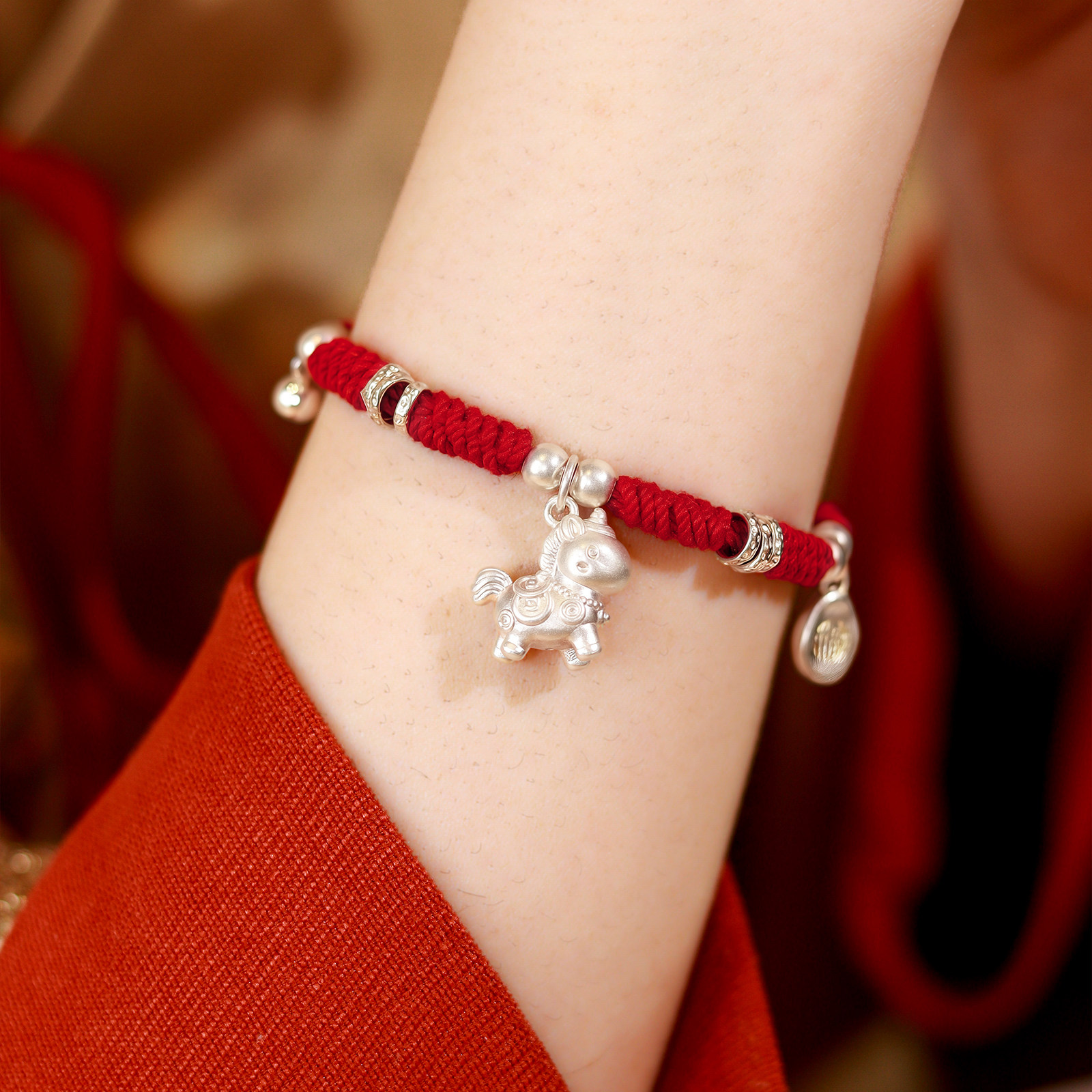 马喜盈情侣2026纯银999马年本命年红手绳编织绳手链轻奢小众精致