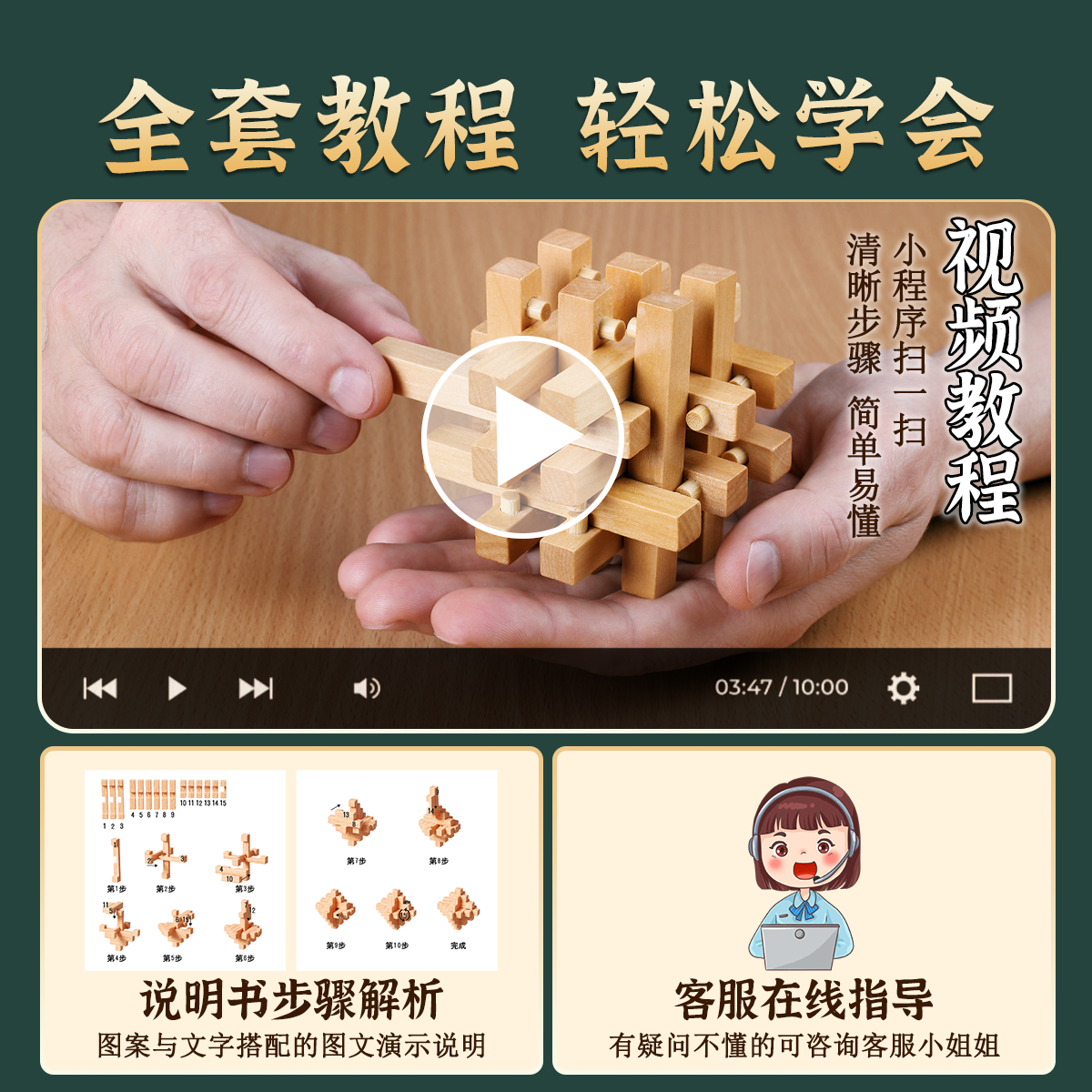 小学生鲁班锁儿童智力解扣玩具初中生孔明锁益智全套礼盒榫卯积木
