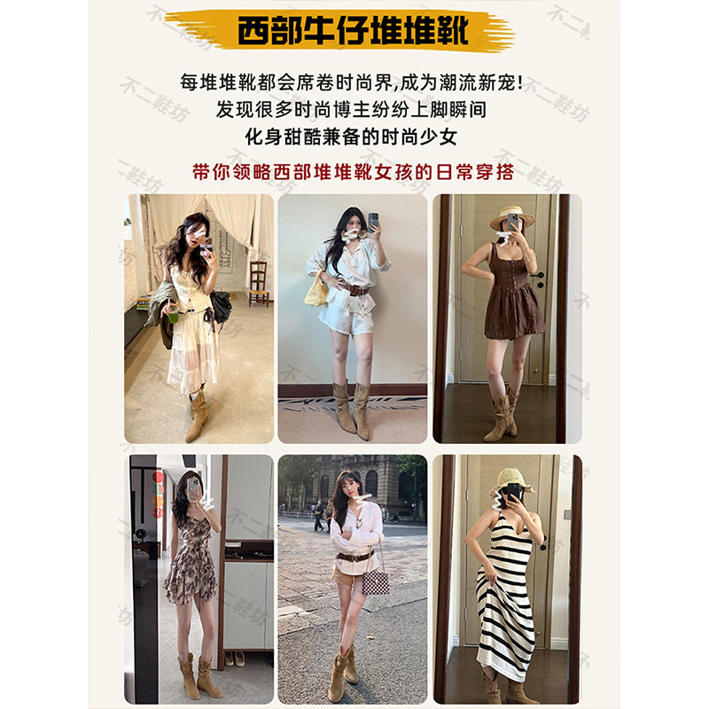 羊皮版!西部褶皱短靴女堆堆靴复古英伦风小个子内增高中筒马丁靴