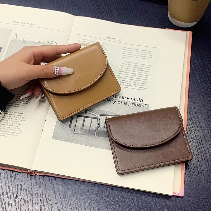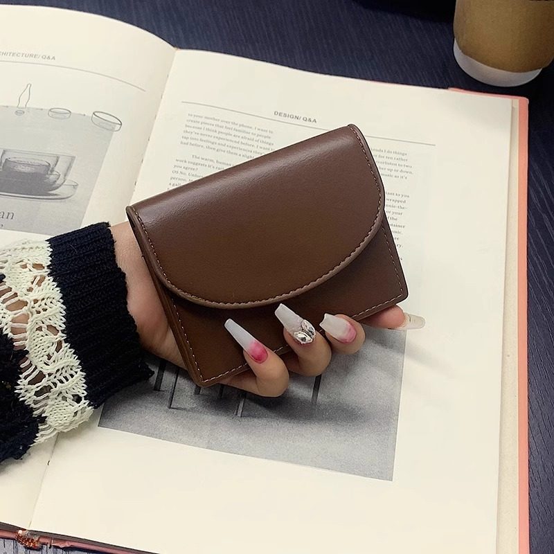 韩国百搭ins简约零钱包便携小巧纯色短款卡包女学生磁吸PU皮卡夹