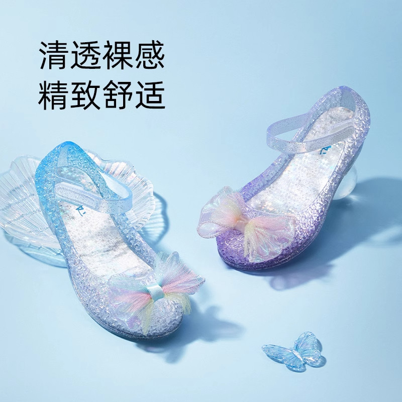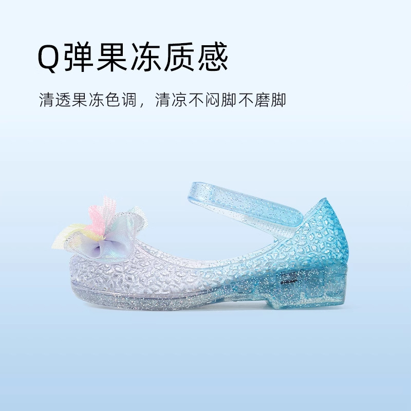 泰兰尼斯女童艾莎公主鞋闪灯鞋水晶果冻鞋防滑可爱甜美凉鞋儿童鞋