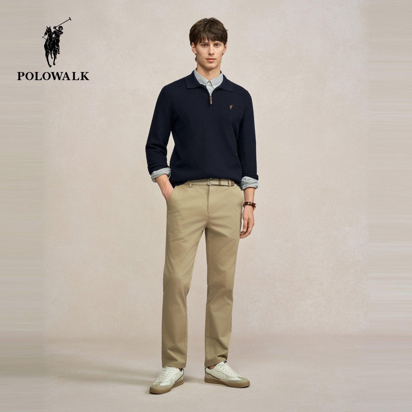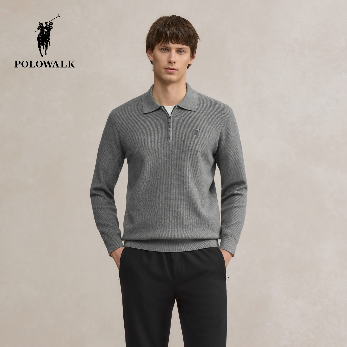 POLOWALK男装针织衫2025秋季新品百搭半拉链翻领套头上衣打底衫男