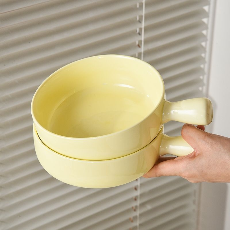 烤箱专用陶瓷烤碗家用带手柄碗水果沙拉碗卡通学生宿舍单柄泡面碗