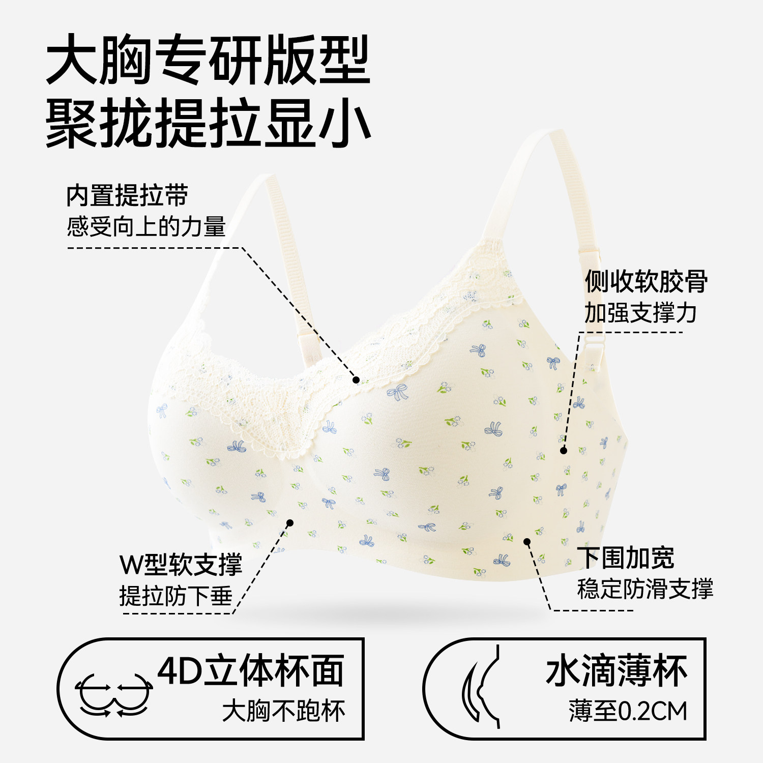 大胸显小显瘦/聚拢挺拔/收副乳调整型文胸/
