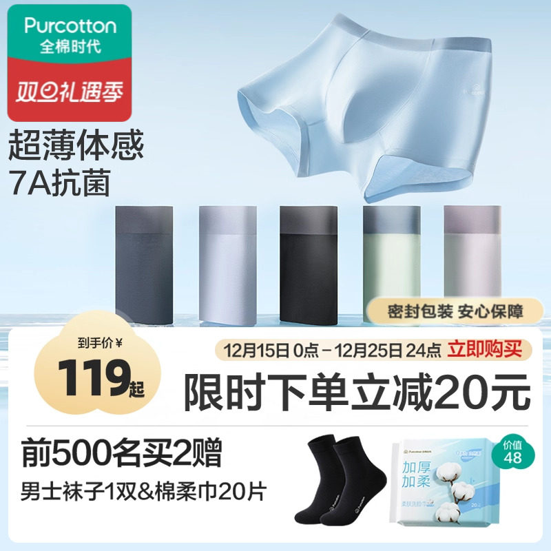 全棉时代男士内裤棉透气抗菌轻薄中腰平角裤凉感透气四角裤
