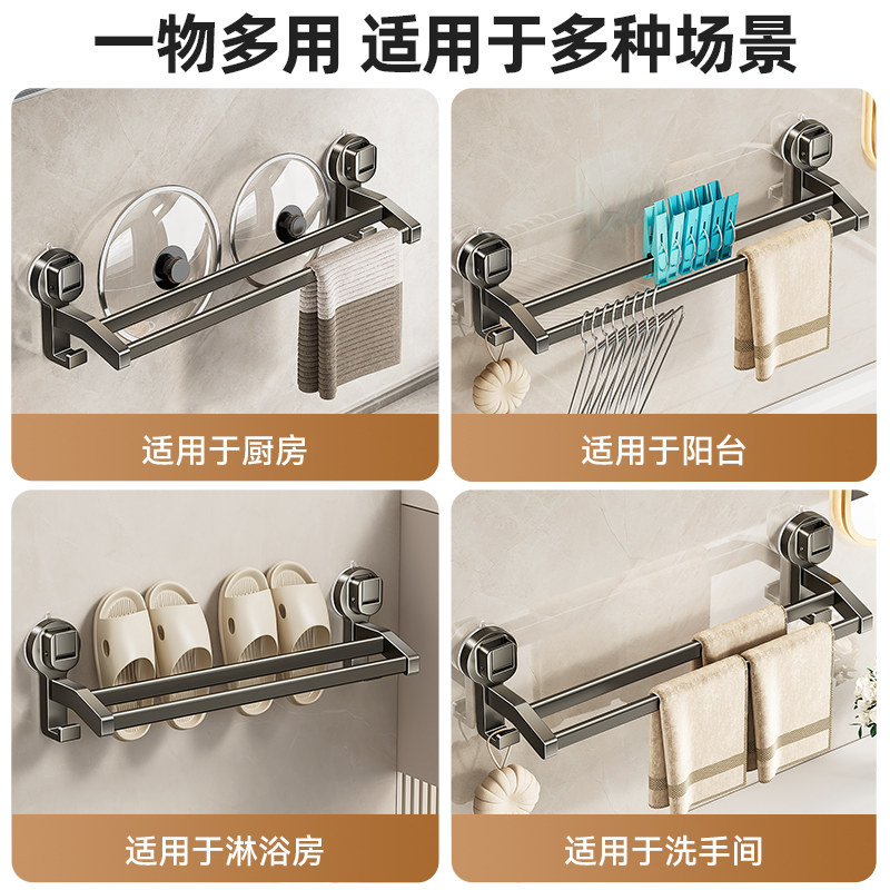 吸盘毛巾架子卫生间免打孔浴室毛巾拖鞋收纳挂架壁挂洗手间单双杆