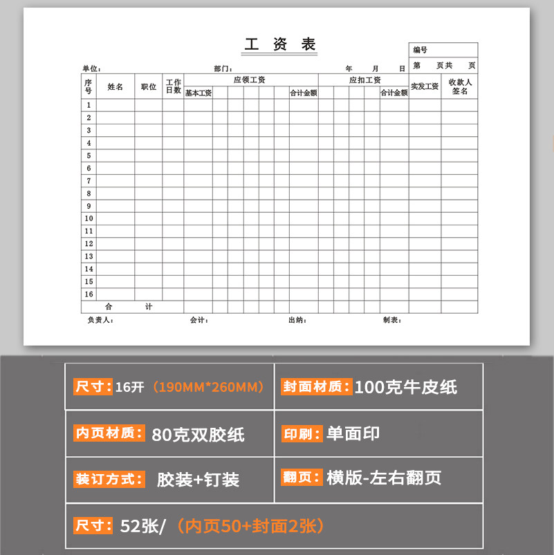 工资表工资发放记录本考勤表记工簿员工薪资发放明细报表财务部签到记录账万能表人事考勤结算表公司工作登记