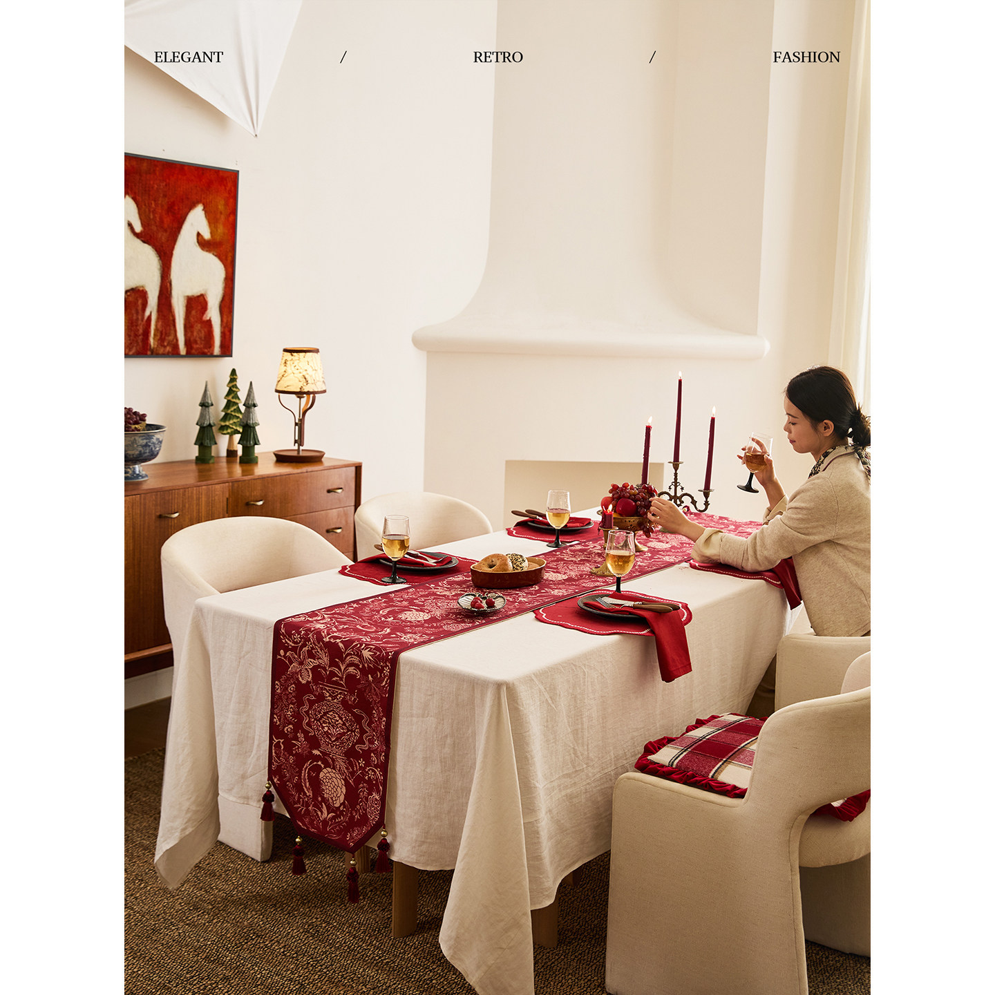 现代轻奢桌旗茶几盖布新年红色节日喜庆