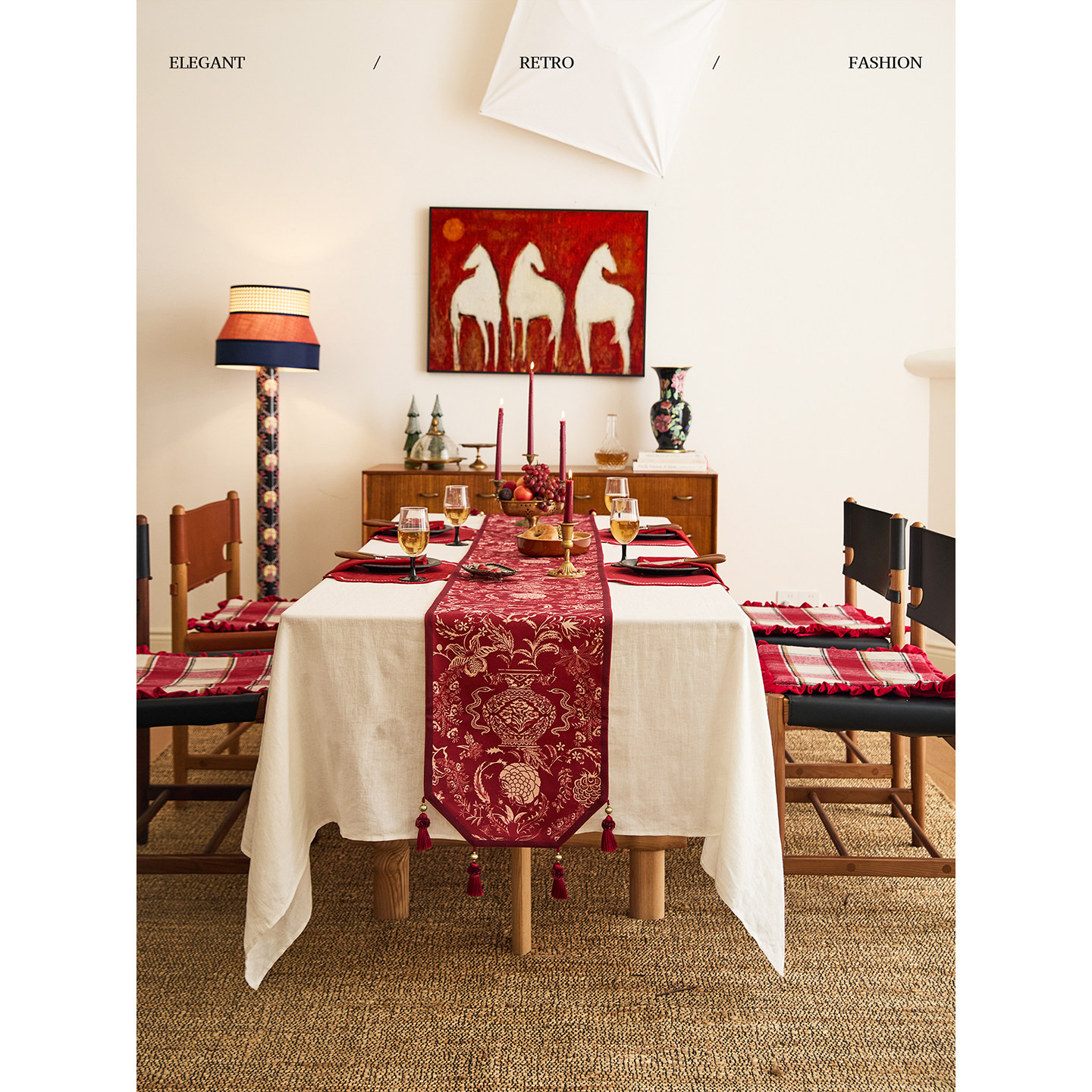 蜡笔派丹鸟瑞影桌旗红色现代轻奢茶几盖布喜庆节日新年礼物床旗
